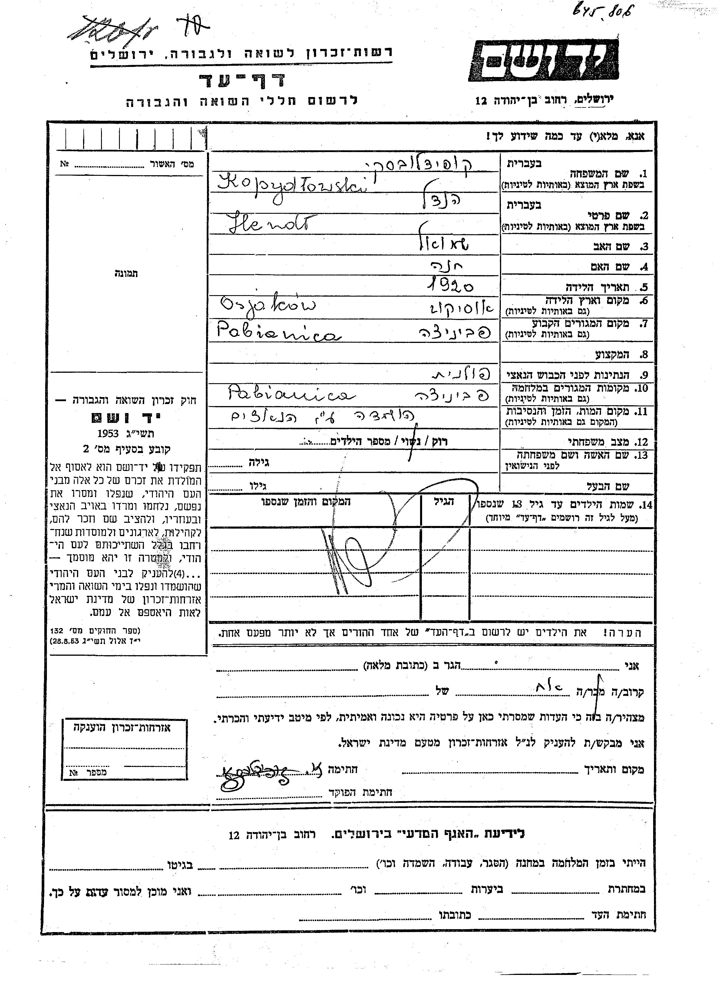 יד ושם - המפעל להנצחת השמות בדפי עד