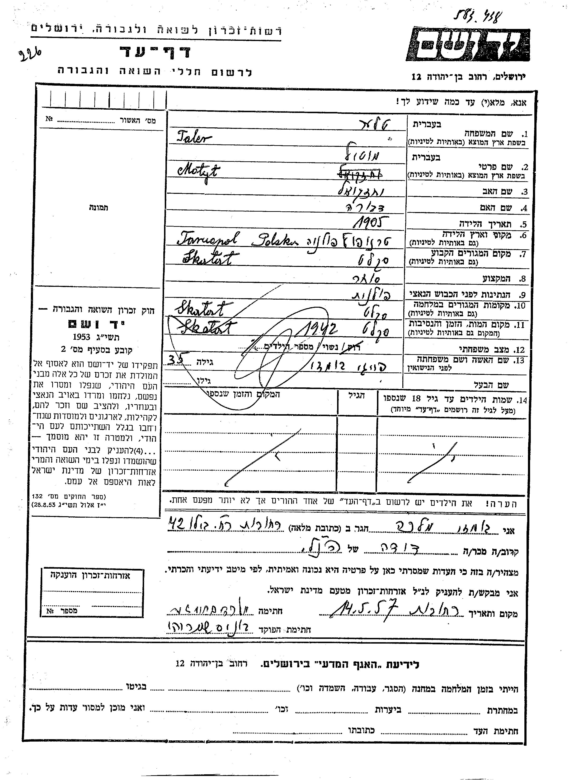 יד ושם - המפעל להנצחת השמות בדפי עד