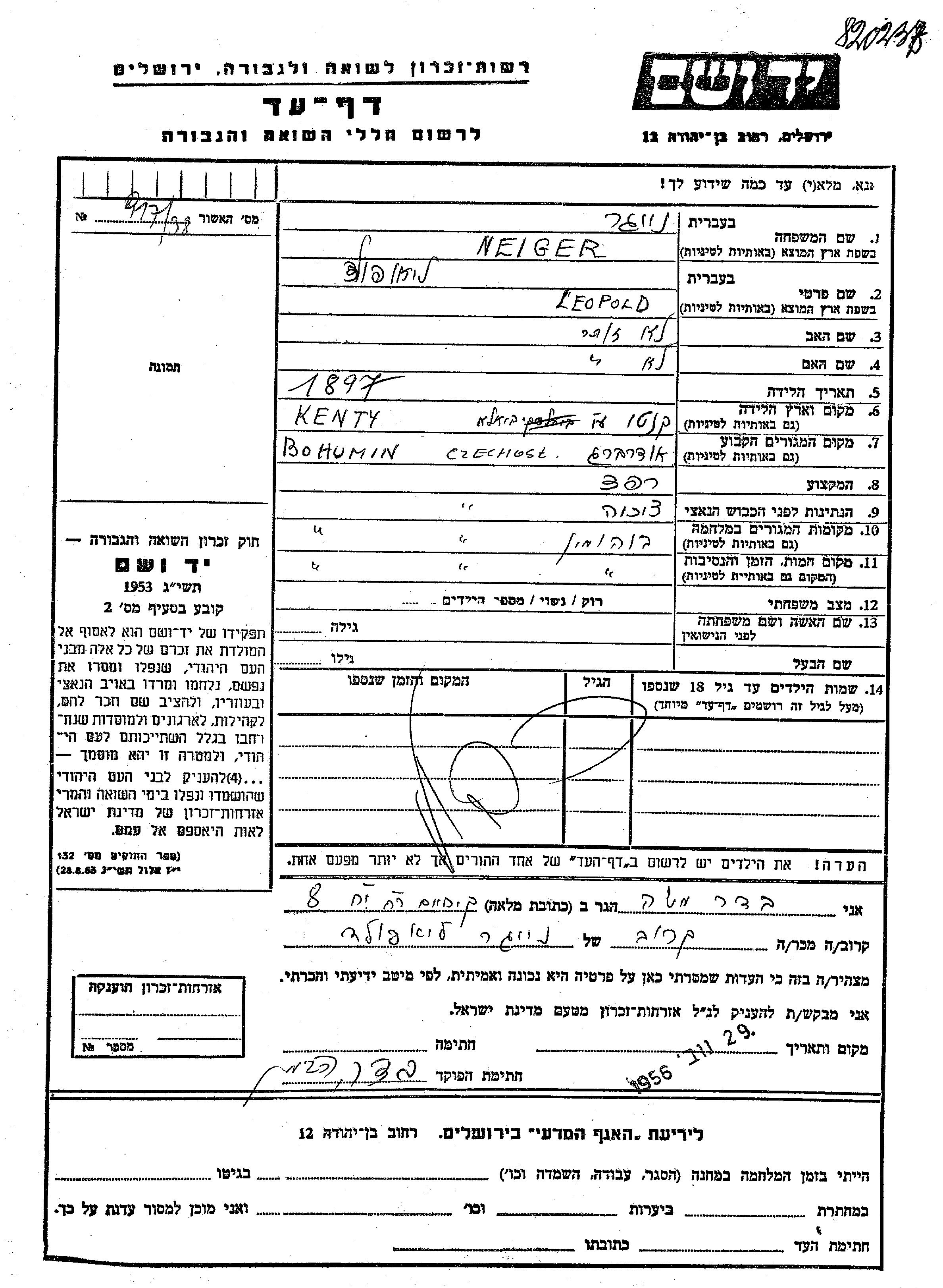 ליאופולד נרצח בשואה. מקום המוות: Bohumin שבצ'כוסלובקיה.
