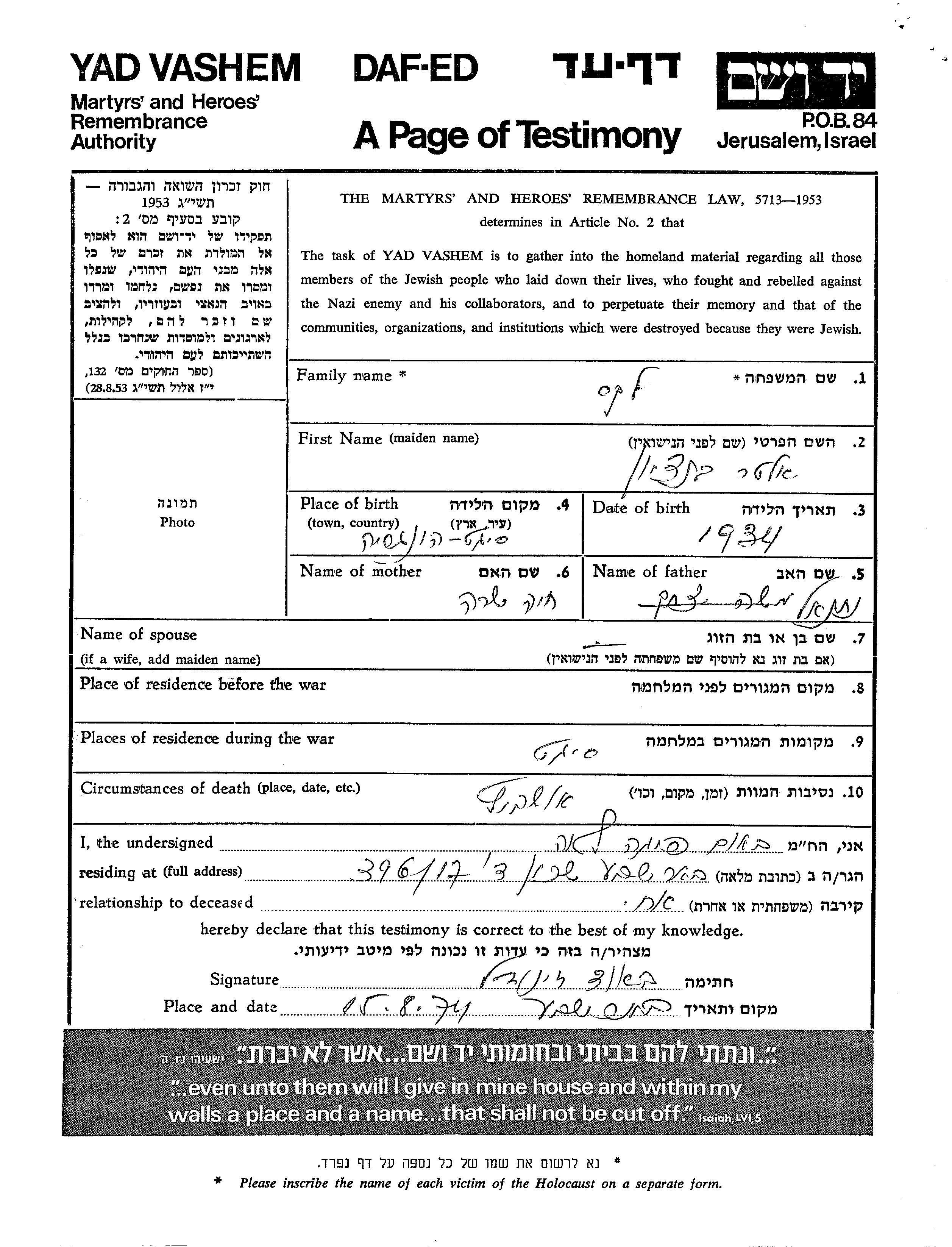 אלטר בן ציון לקס נולד בSighet שברומניה בשנת 1934 לנתנאל וחיה שרה. הוא היה רווק. לפני מלחמת העולם השניה התגורר בSighet שברומניה. בזמן המלחמה הוא היה בSighet שברומניה. אלטר בן ציון נרצח בשואה. מקום המוות: Auschwitz שבפולין.