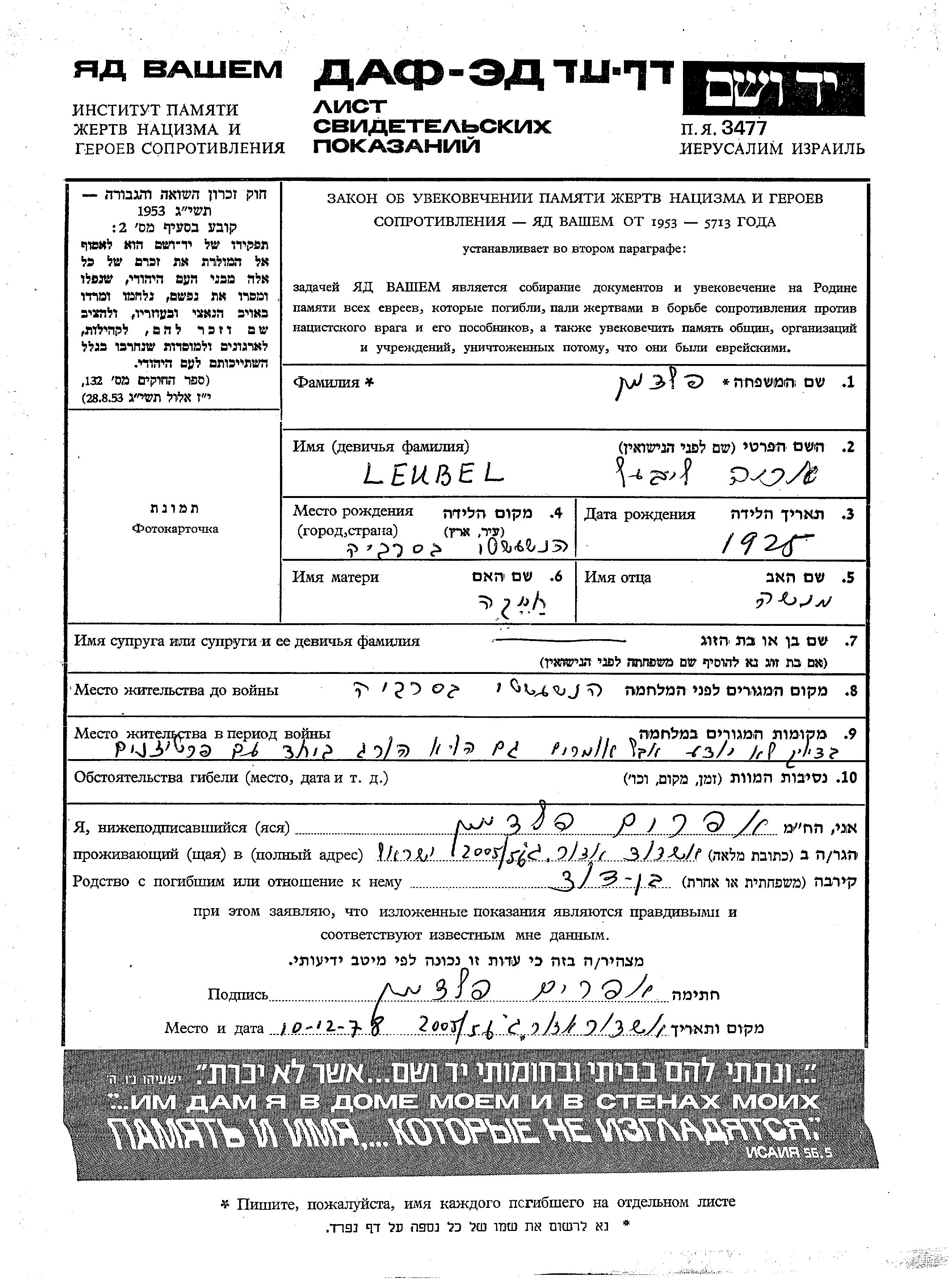 יד ושם - המפעל להנצחת השמות בדפי עד