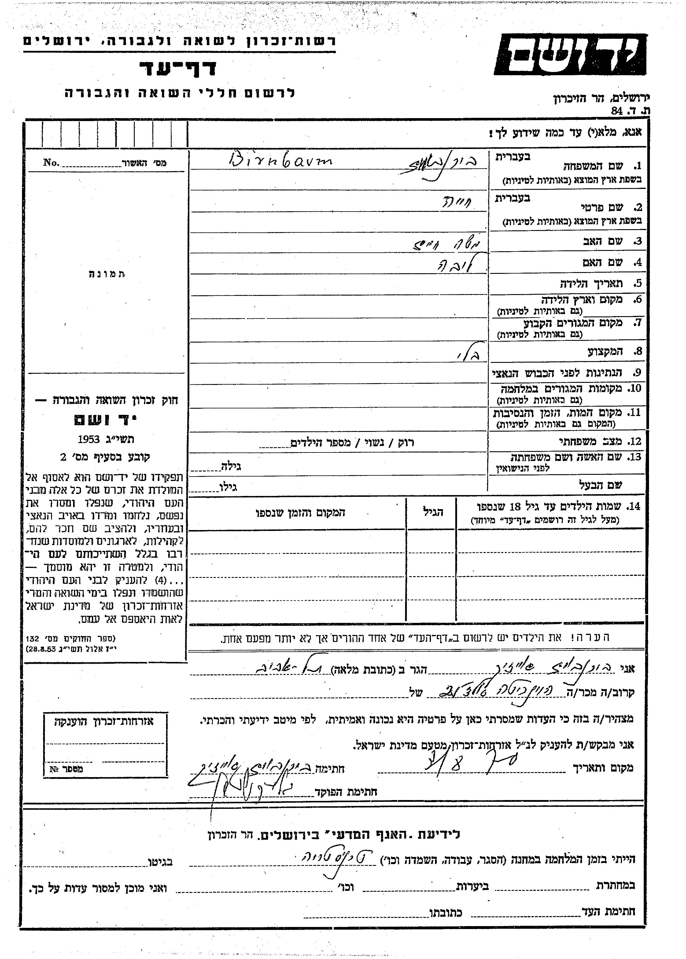 יד ושם - המפעל להנצחת השמות בדפי עד