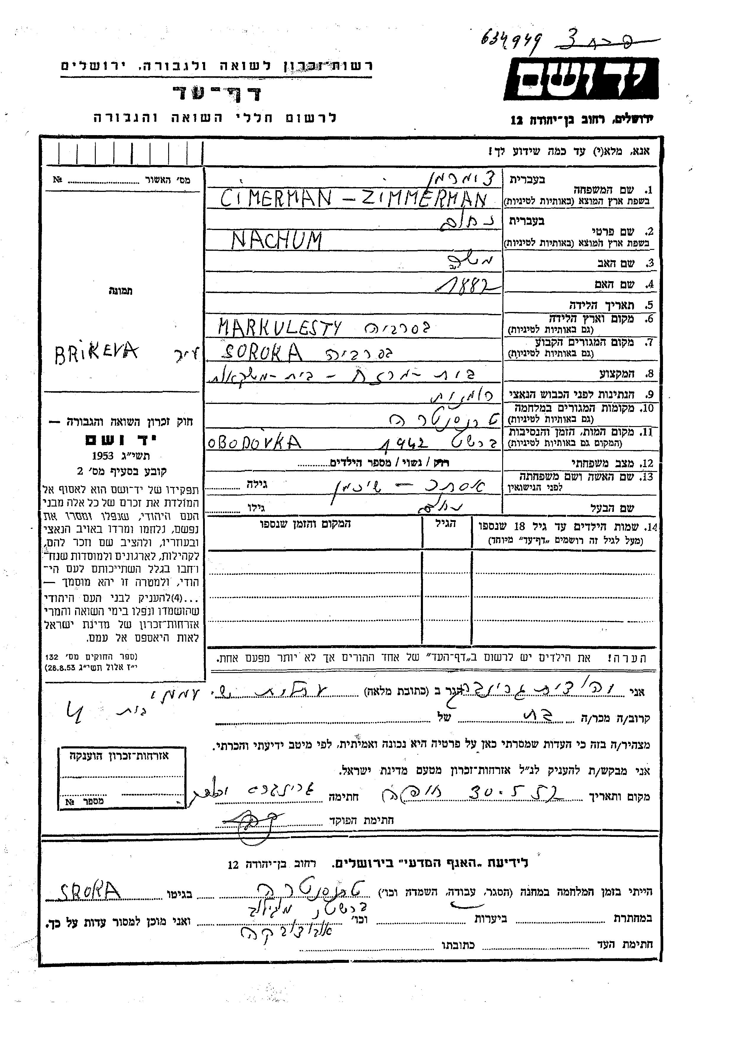 חיפוש שם מוסר דף העד. חיפוש לפי כל שם פרטי, כולל כינוי או שם חיבה