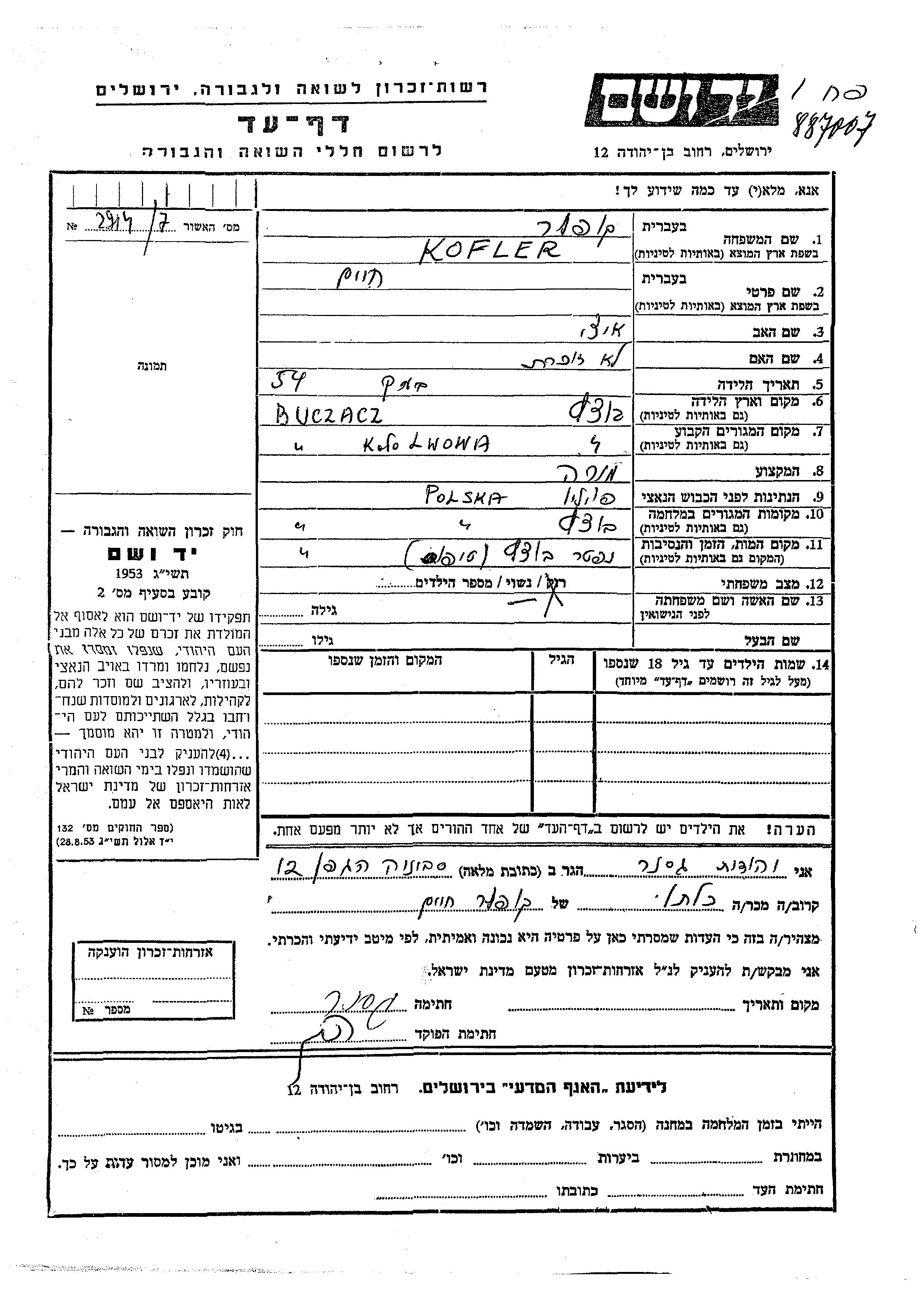 יד ושם - המפעל להנצחת השמות בדפי עד