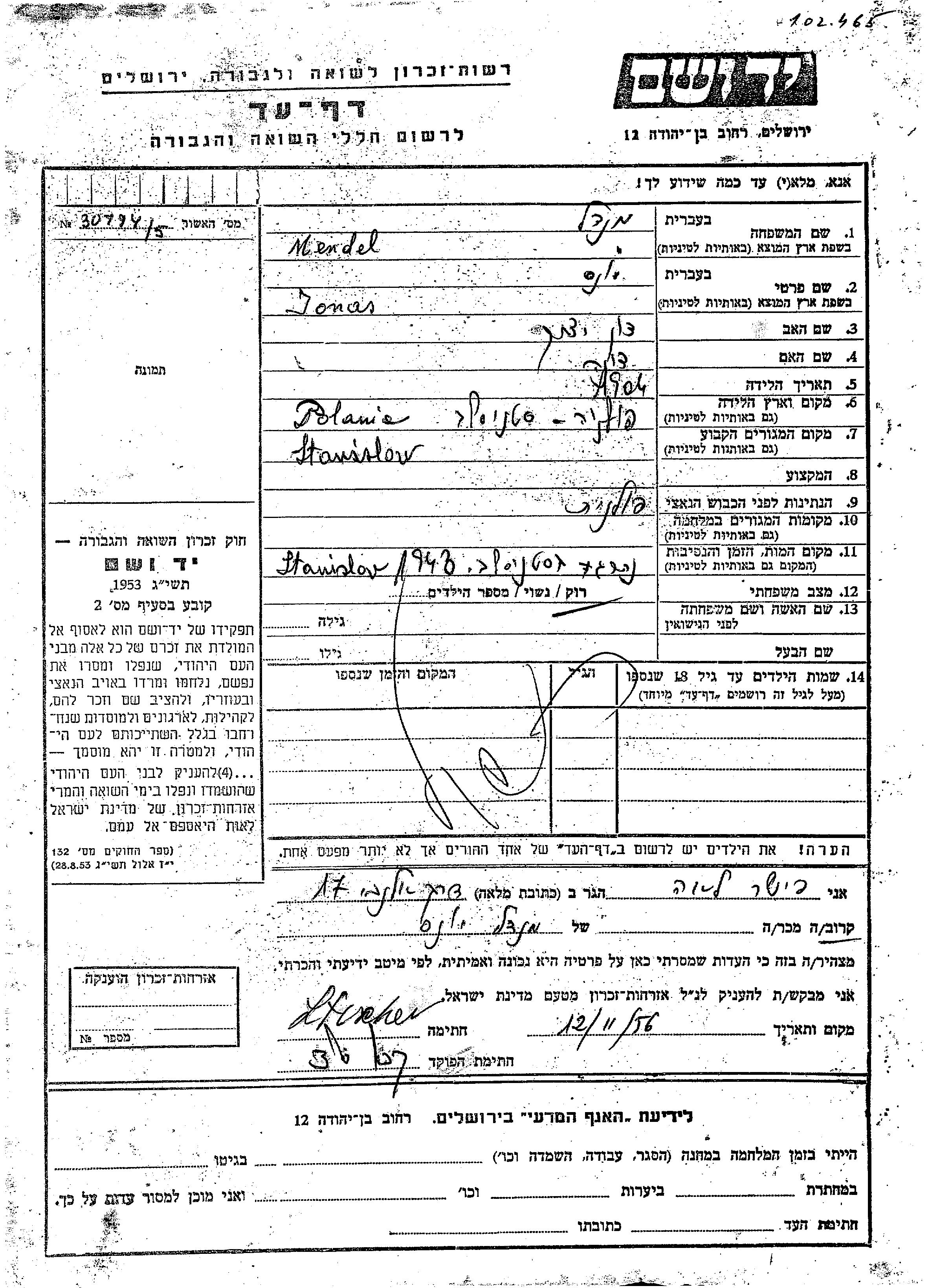 מנדל Jonas 1904 Stanislowow, פולין דף-עד