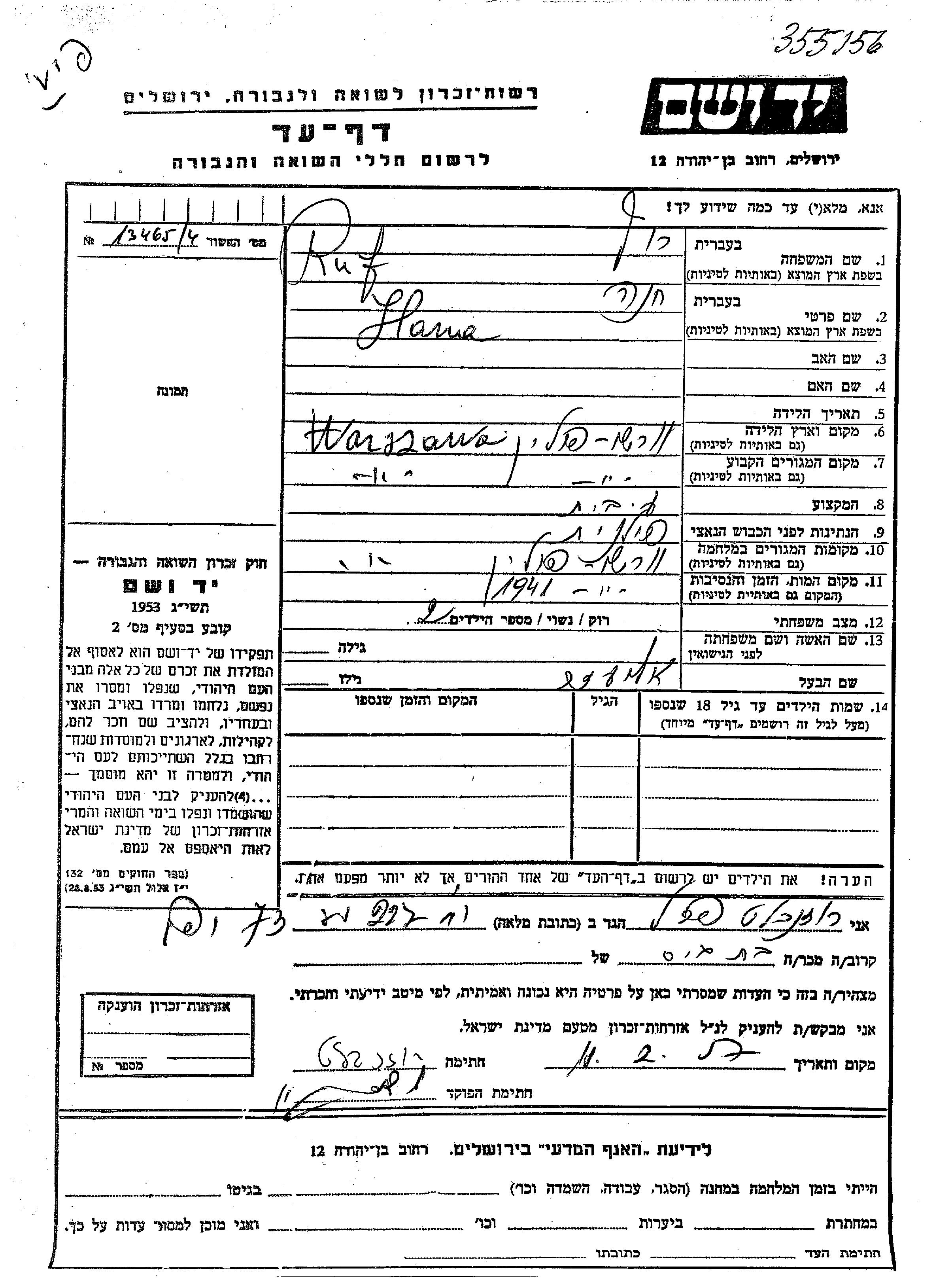 יד ושם - המפעל להנצחת השמות בדפי עד