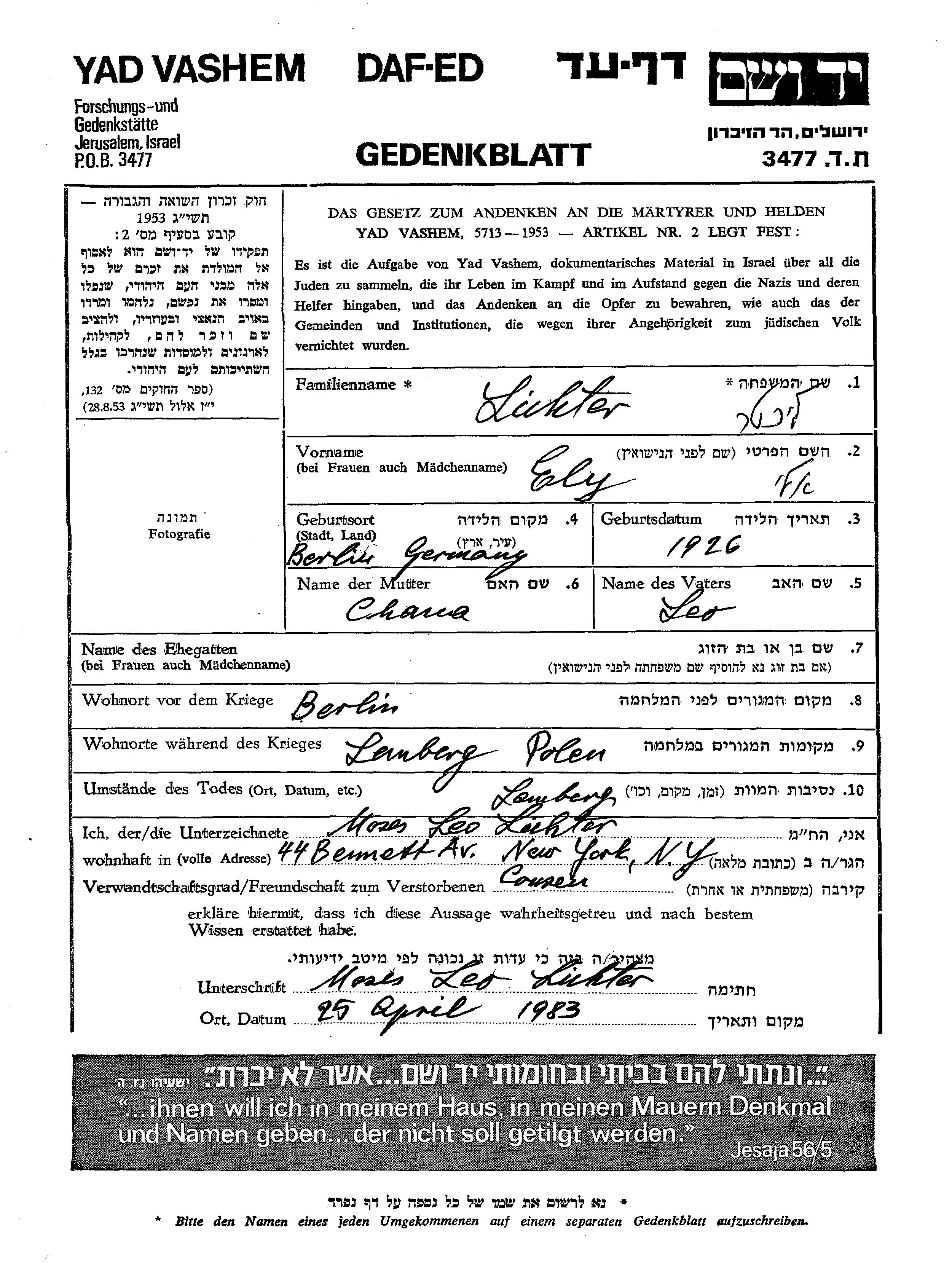 Lichter Ely אלי 1926 Berlin, גרמניה דף-עד