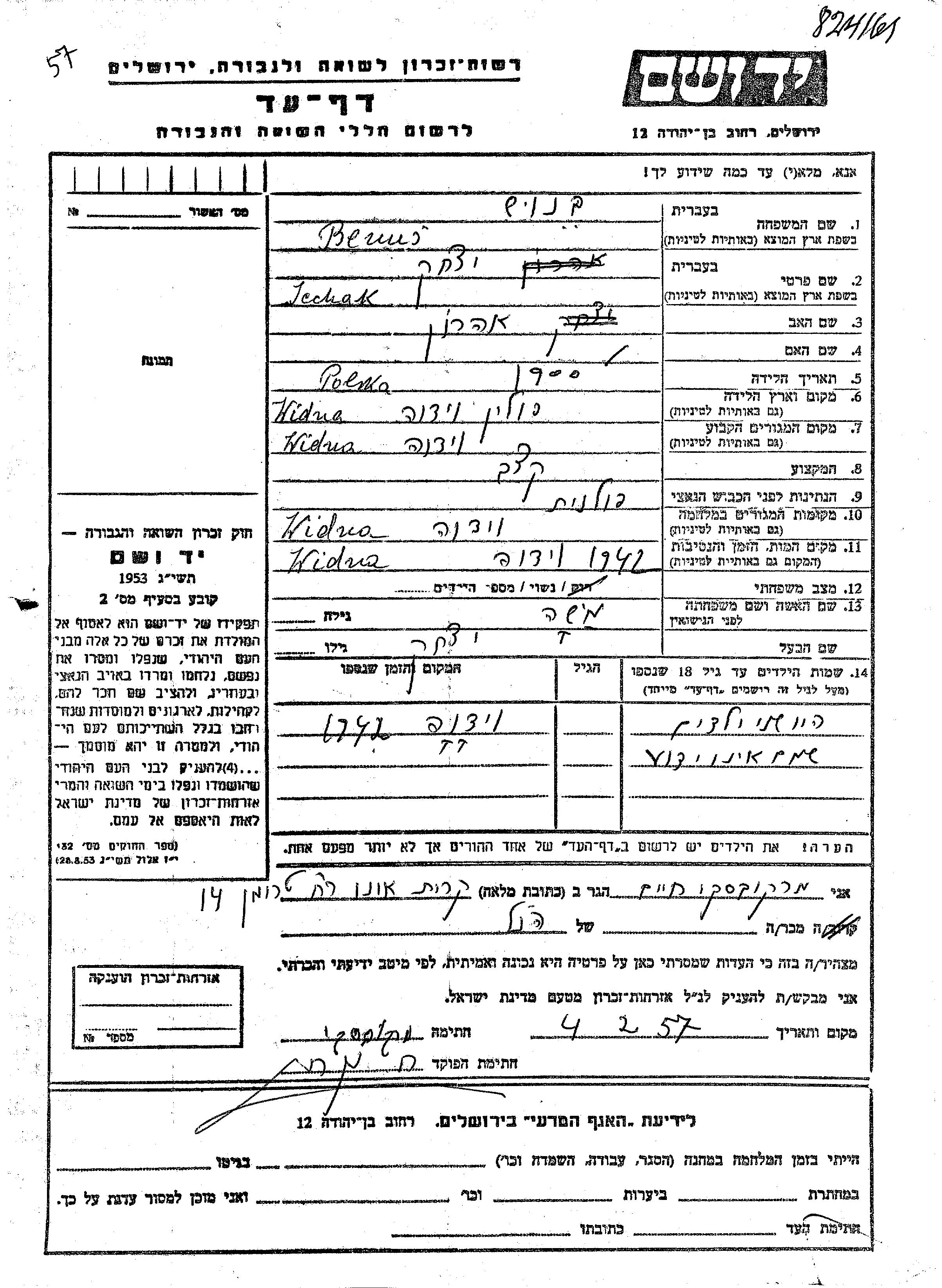 יד ושם - המפעל להנצחת השמות בדפי עד