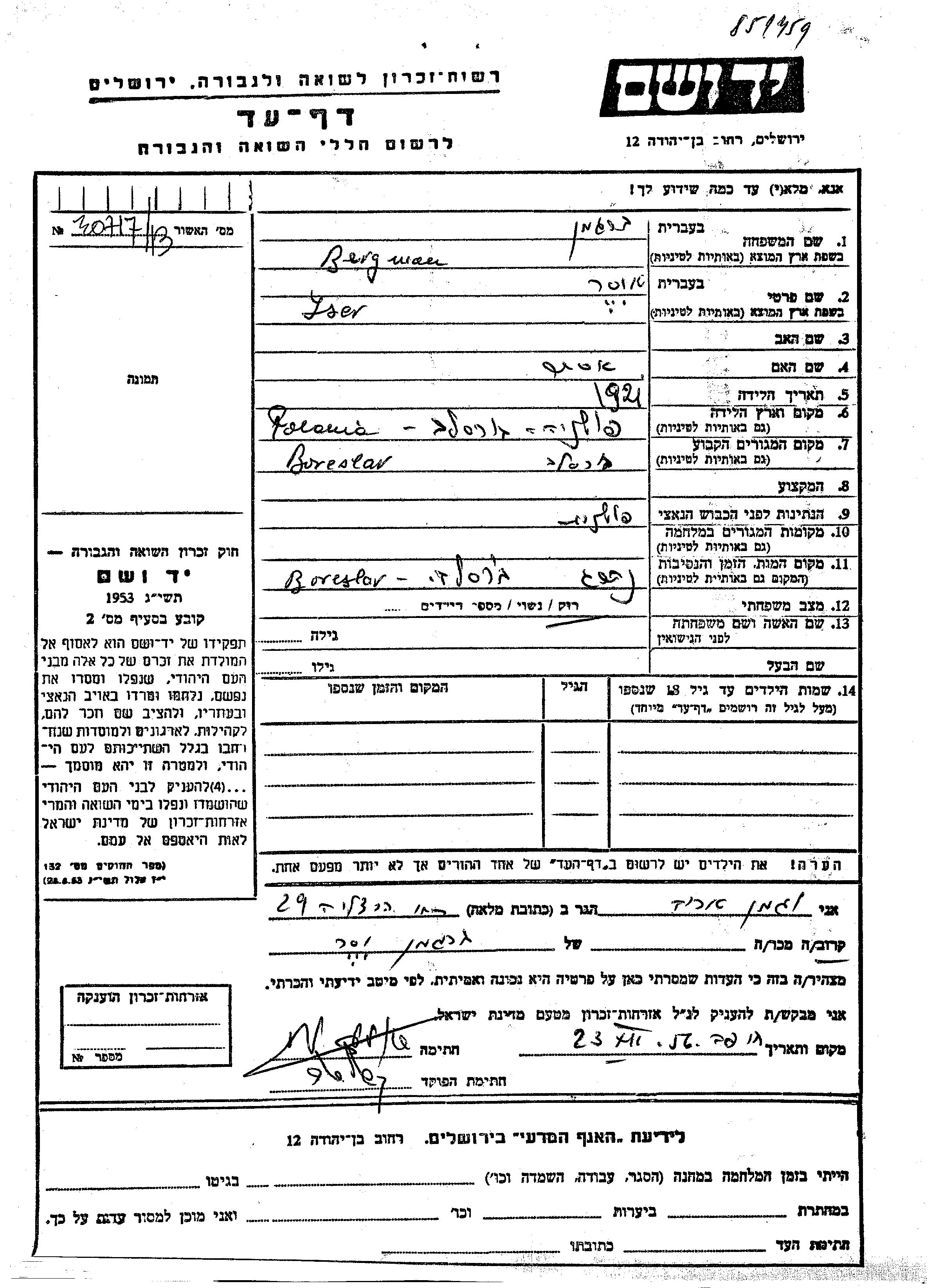 ברגמן איסר 1921 Borislav, פולין דף-עד