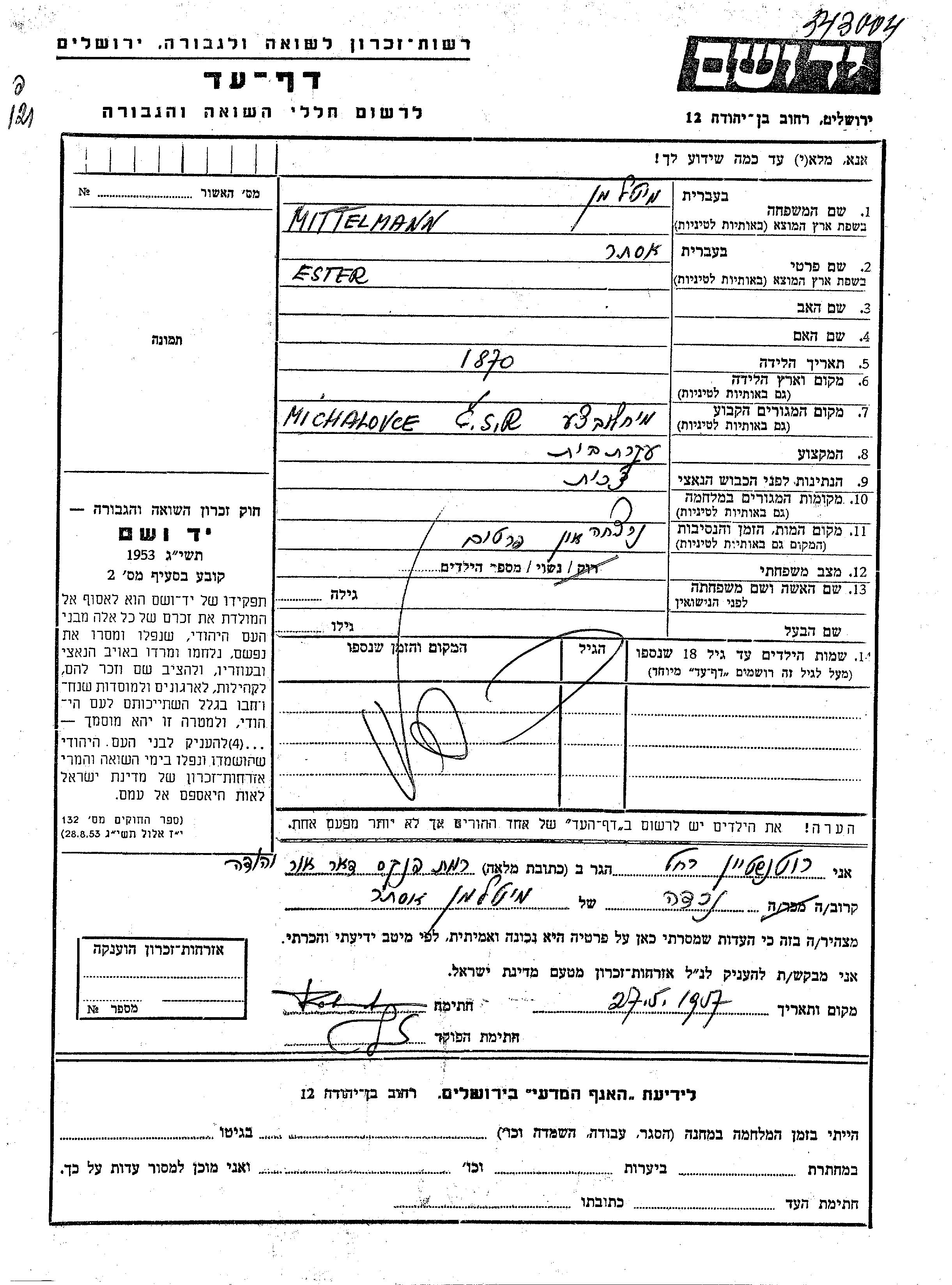 חיפוש שם מוסר דף העד. חיפוש לפי שם משפחה; כולל גם תוצאות חיפוש לפי שם הנעורים של אישה לפני הנישואין