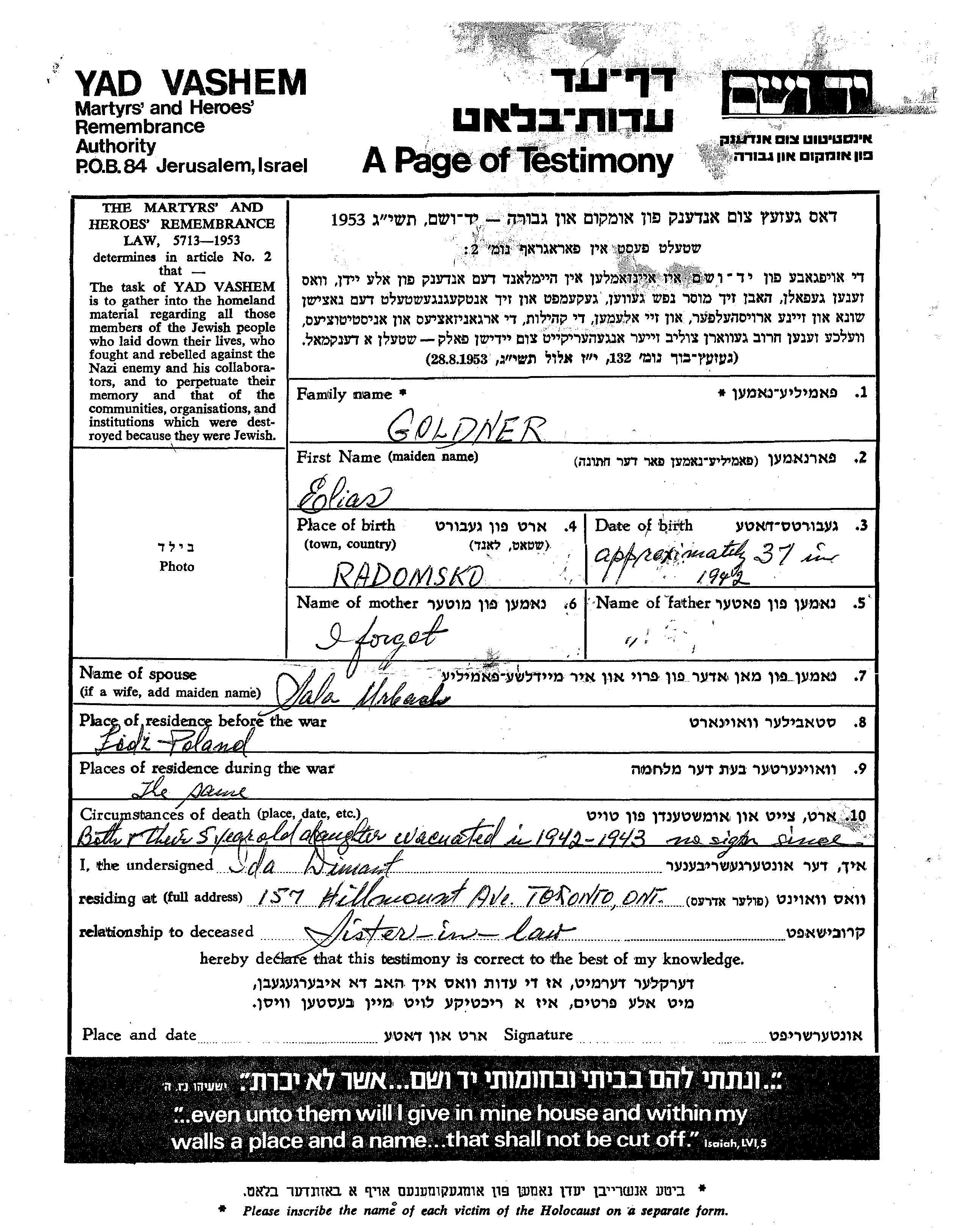 גולדנר Eliau 1942 Lodz, פולין דף-עד