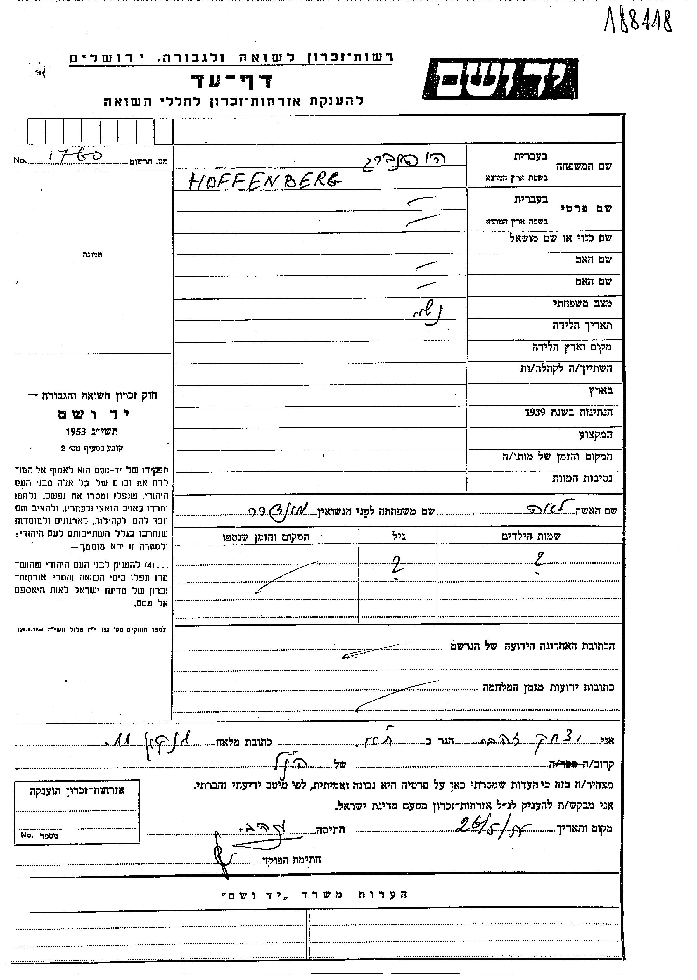 Hoffenberg שם פרטי לא ידוע מקום לא רשום, דף-עד