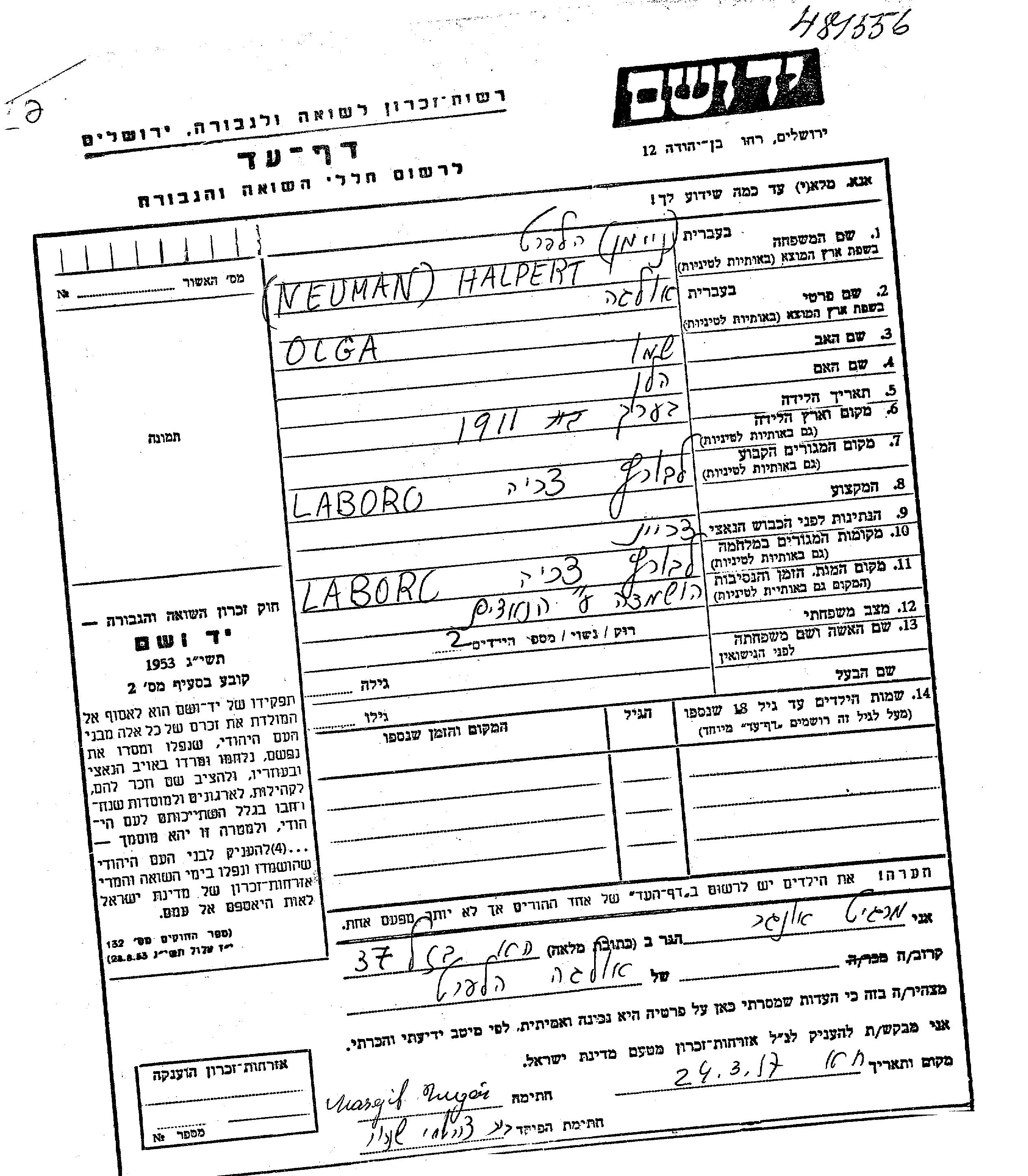 חיפוש שם מוסר דף העד. חיפוש לפי כל שם פרטי, כולל כינוי או שם חיבה
