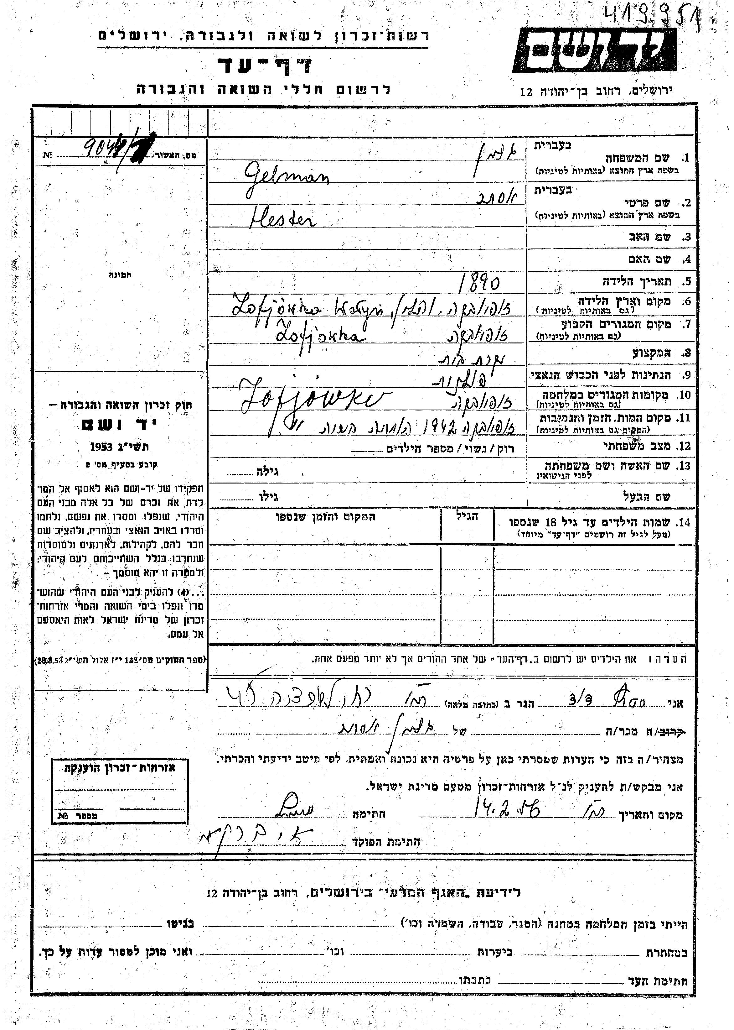 יד ושם - המפעל להנצחת השמות בדפי עד