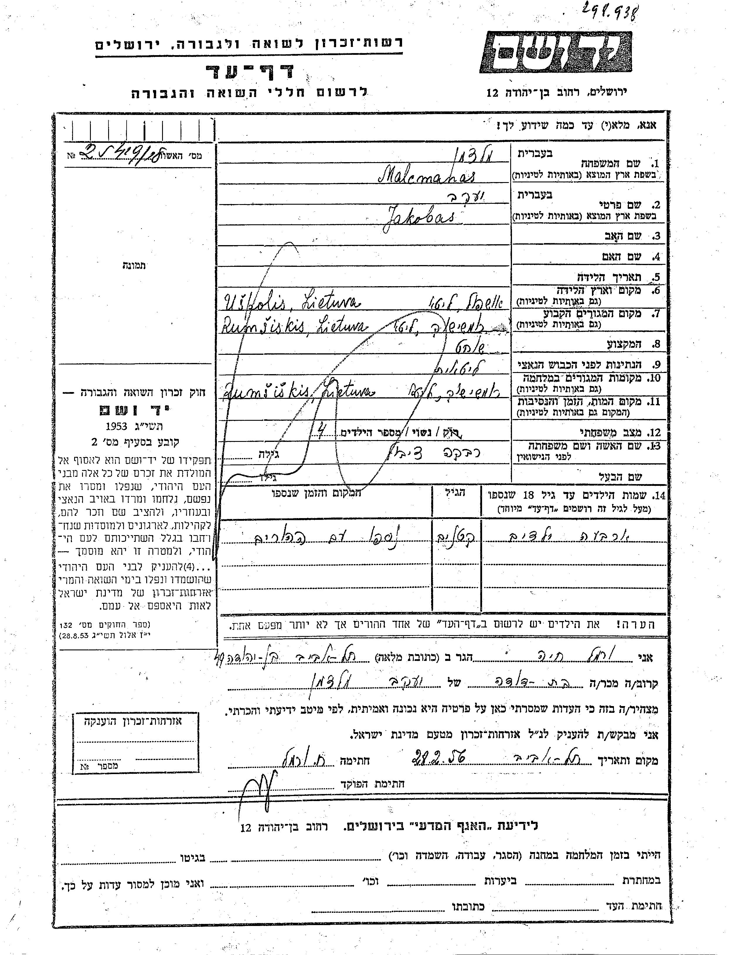 חיפוש שם מוסר דף העד. חיפוש לפי כל שם פרטי, כולל כינוי או שם חיבה