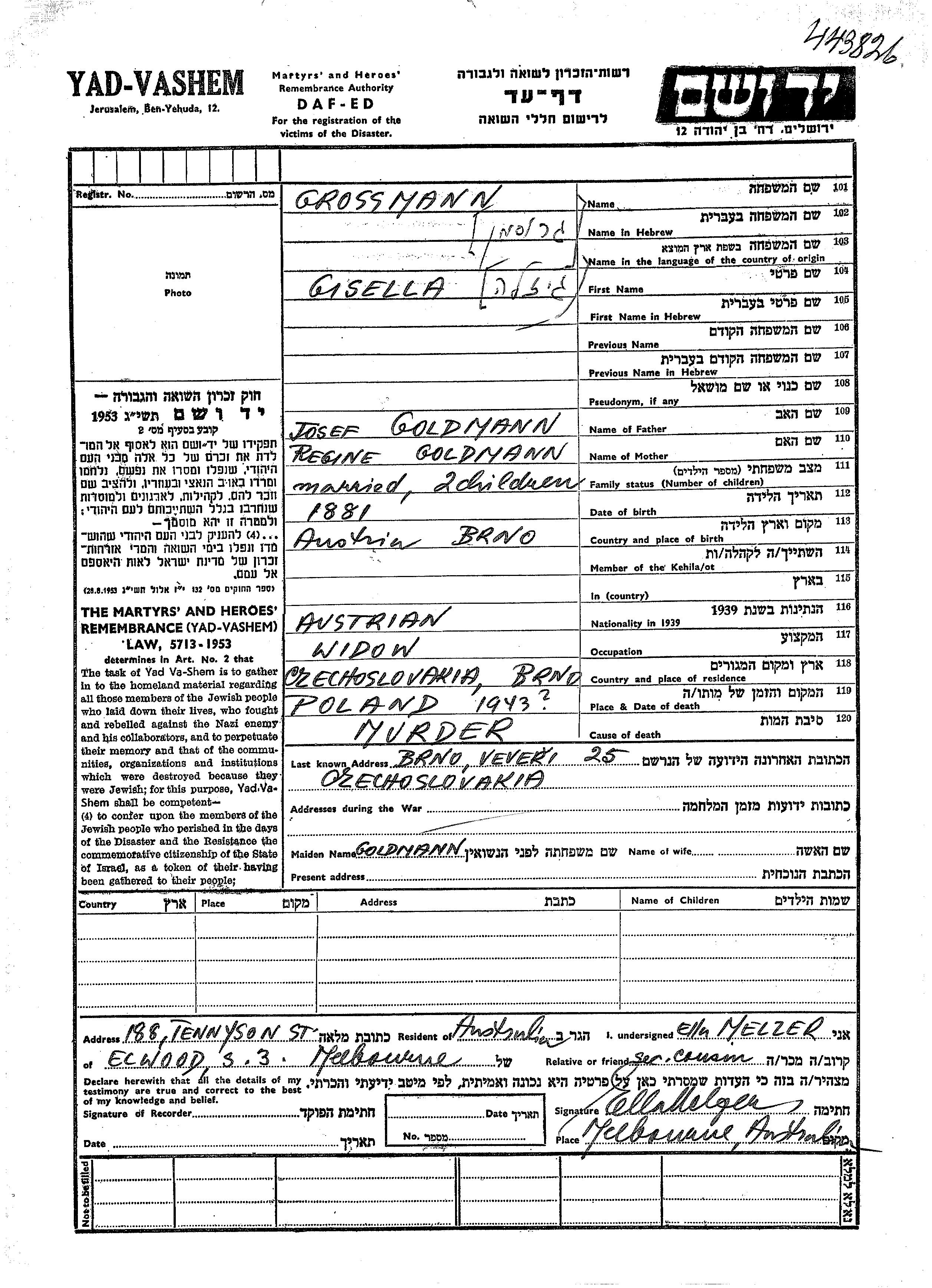 Grossmann Gisella 1881 Brno, צ'כוסלובקיה דף-עד