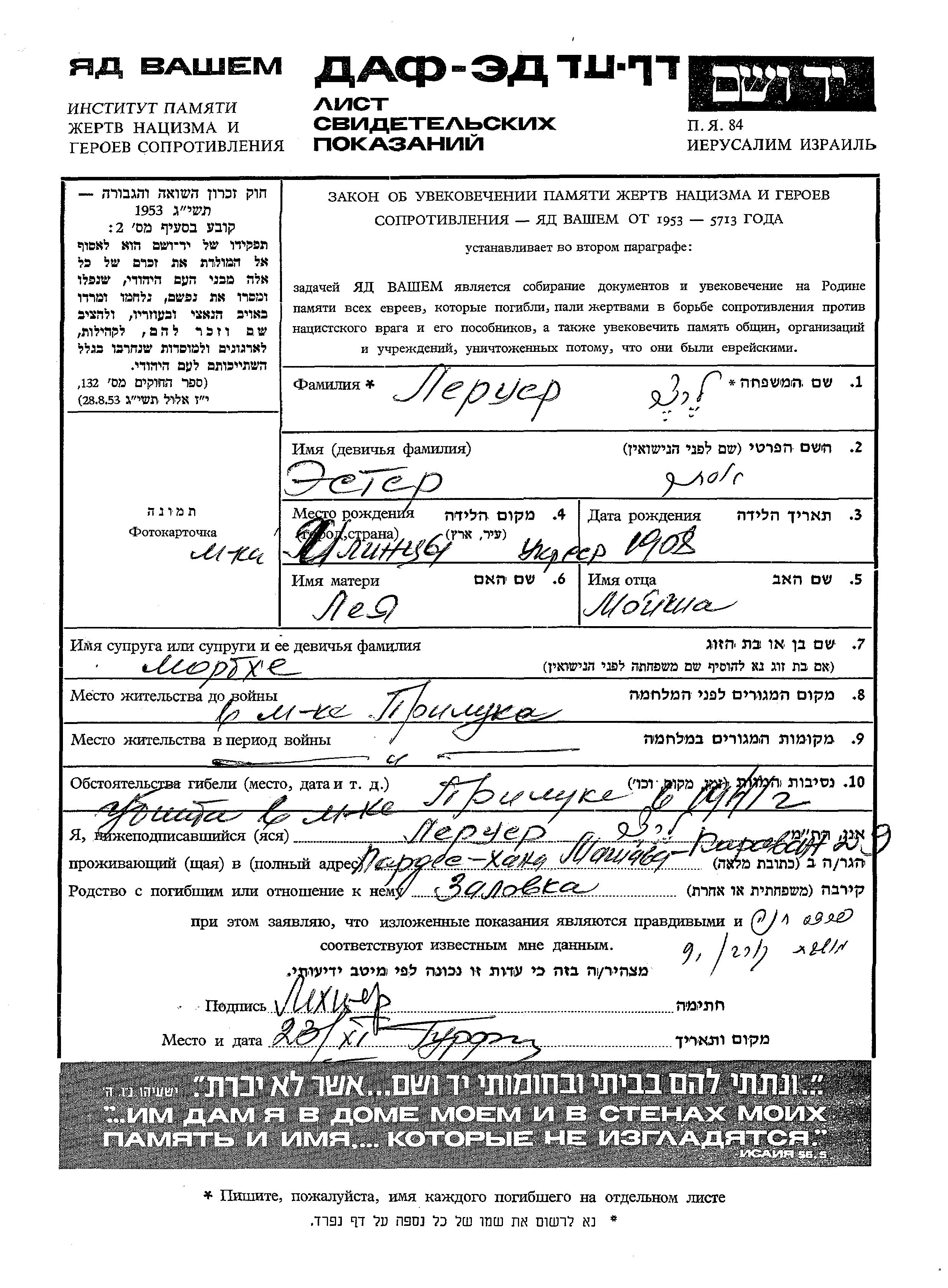 יד ושם - המפעל להנצחת השמות בדפי עד