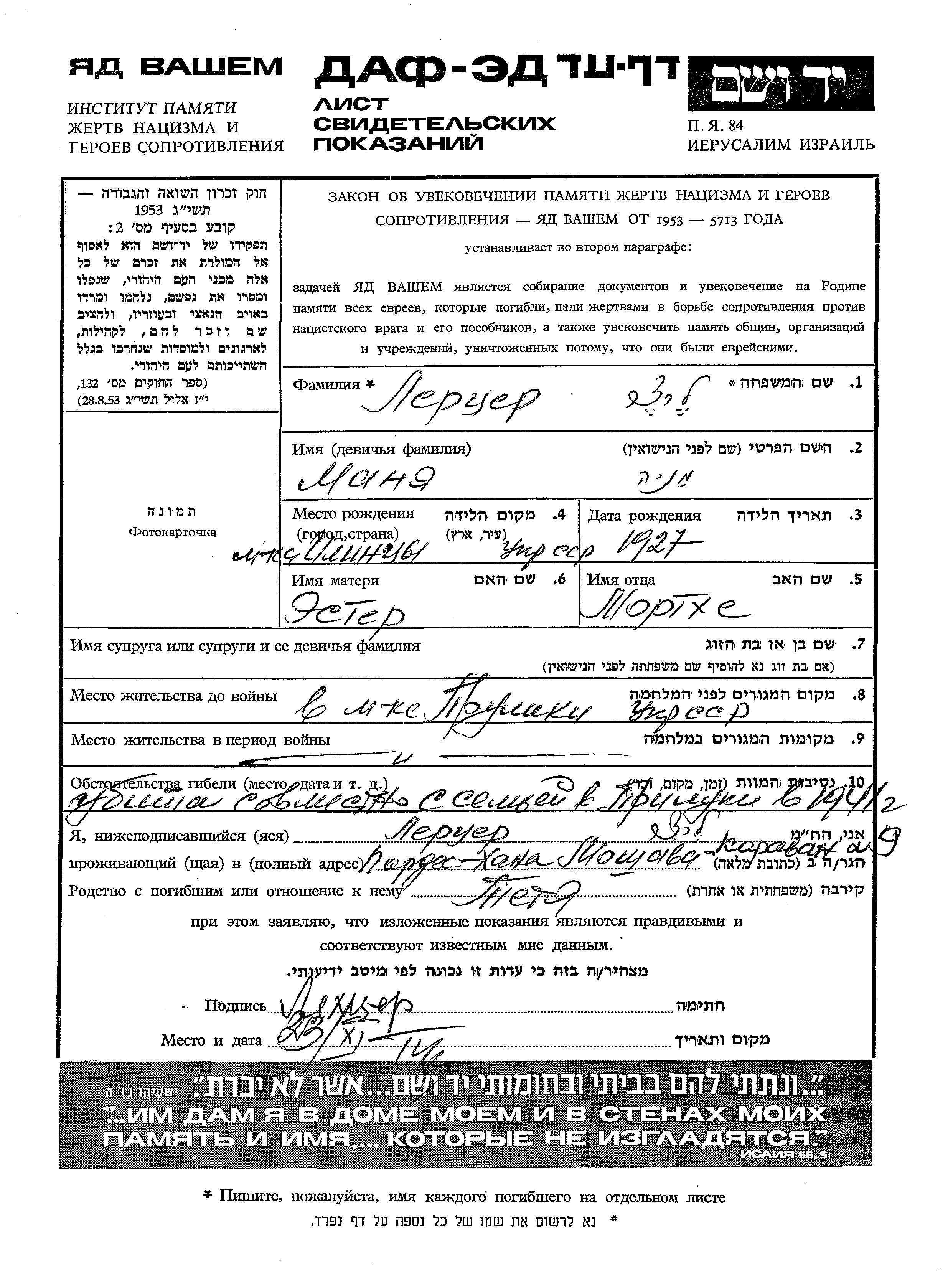 יד ושם - המפעל להנצחת השמות בדפי עד