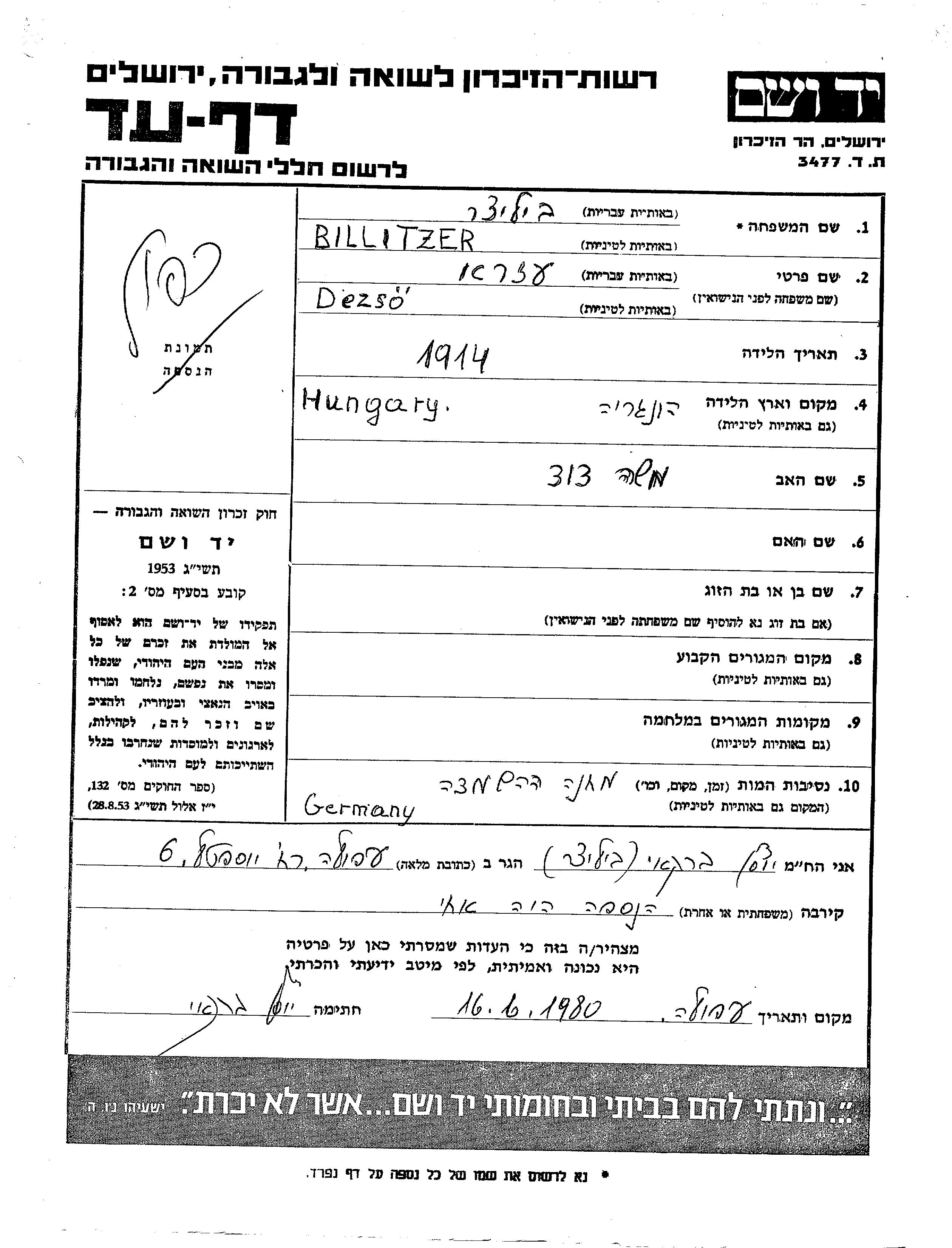 עיר/כפר, גטו/מחנה או אתר רצח או מחוז/אזור או מדינה. שם מקום ניתן לחפש רק בא-ב לטיני.