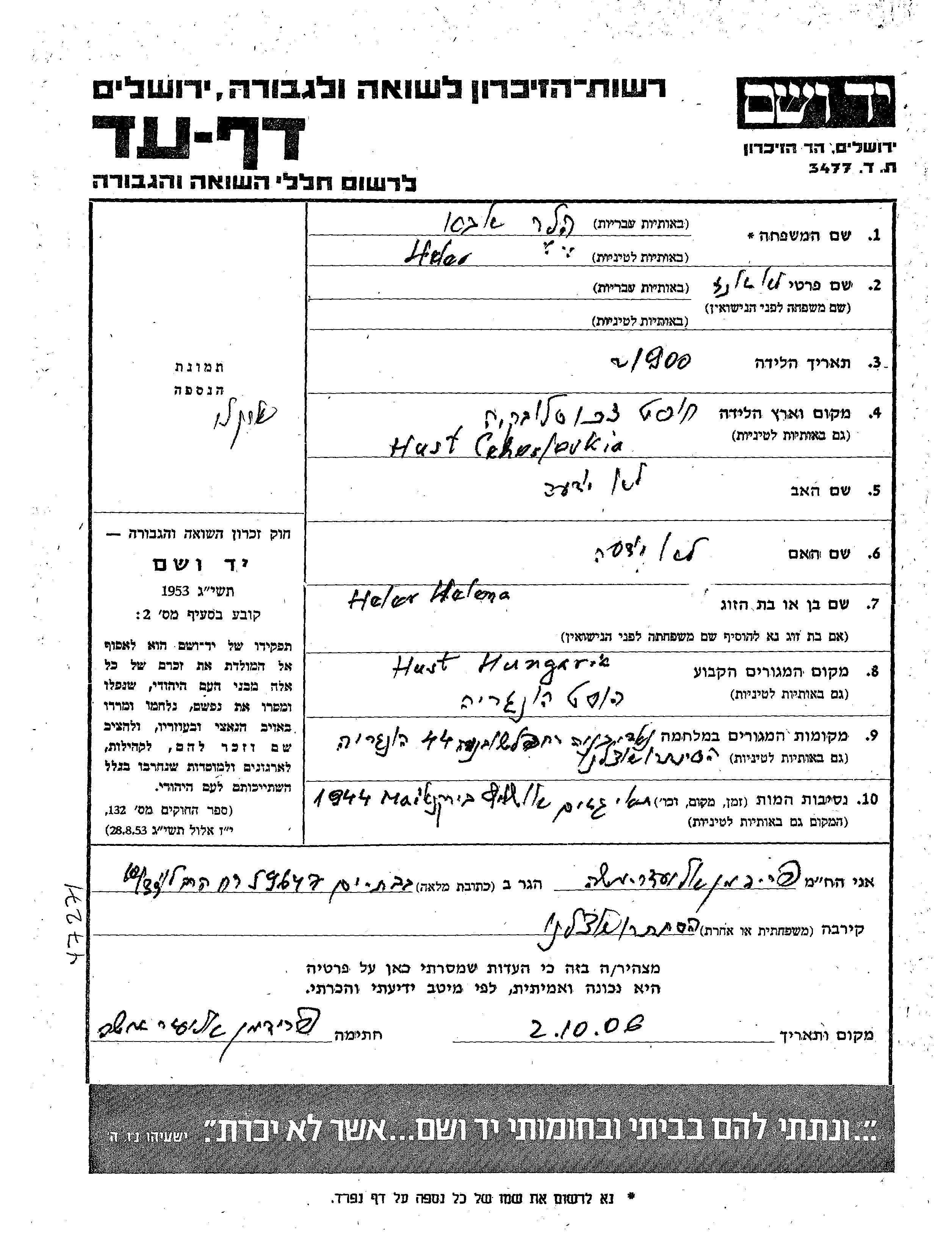 אבא הלר נולד בHust שבצ'כוסלובקיה בשנת 1900. הוא היה נשוי להלנה. לפני מלחמת העולם השניה התגורר בHust שבצ'כוסלובקיה. בזמן המלחמה הוא היה בNagybánya שברומניה. אבא נרצח בשואה. מקום המוות: Auschwitz שבפולין בשנת 05/1944.