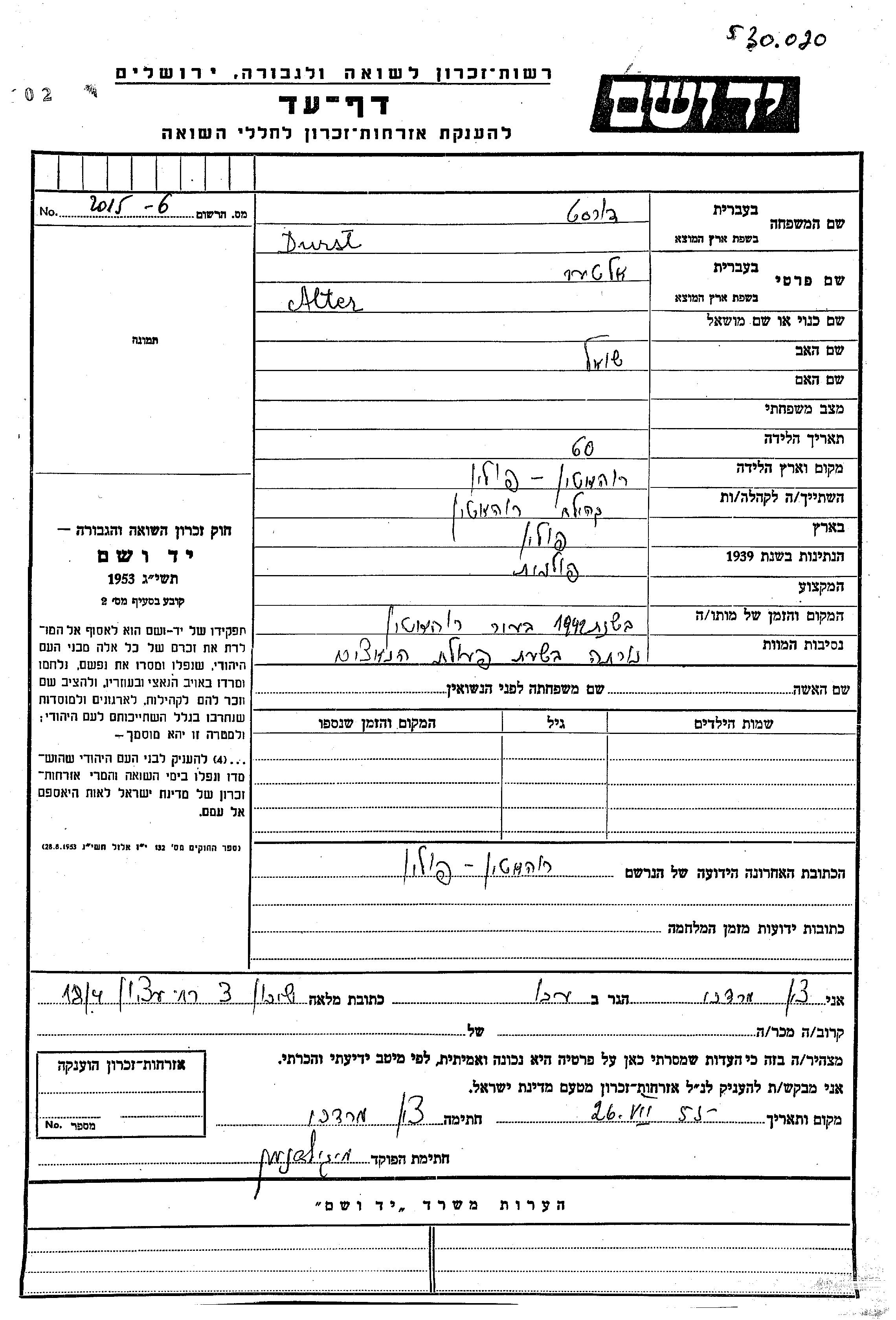 יד ושם - המפעל להנצחת השמות בדפי עד