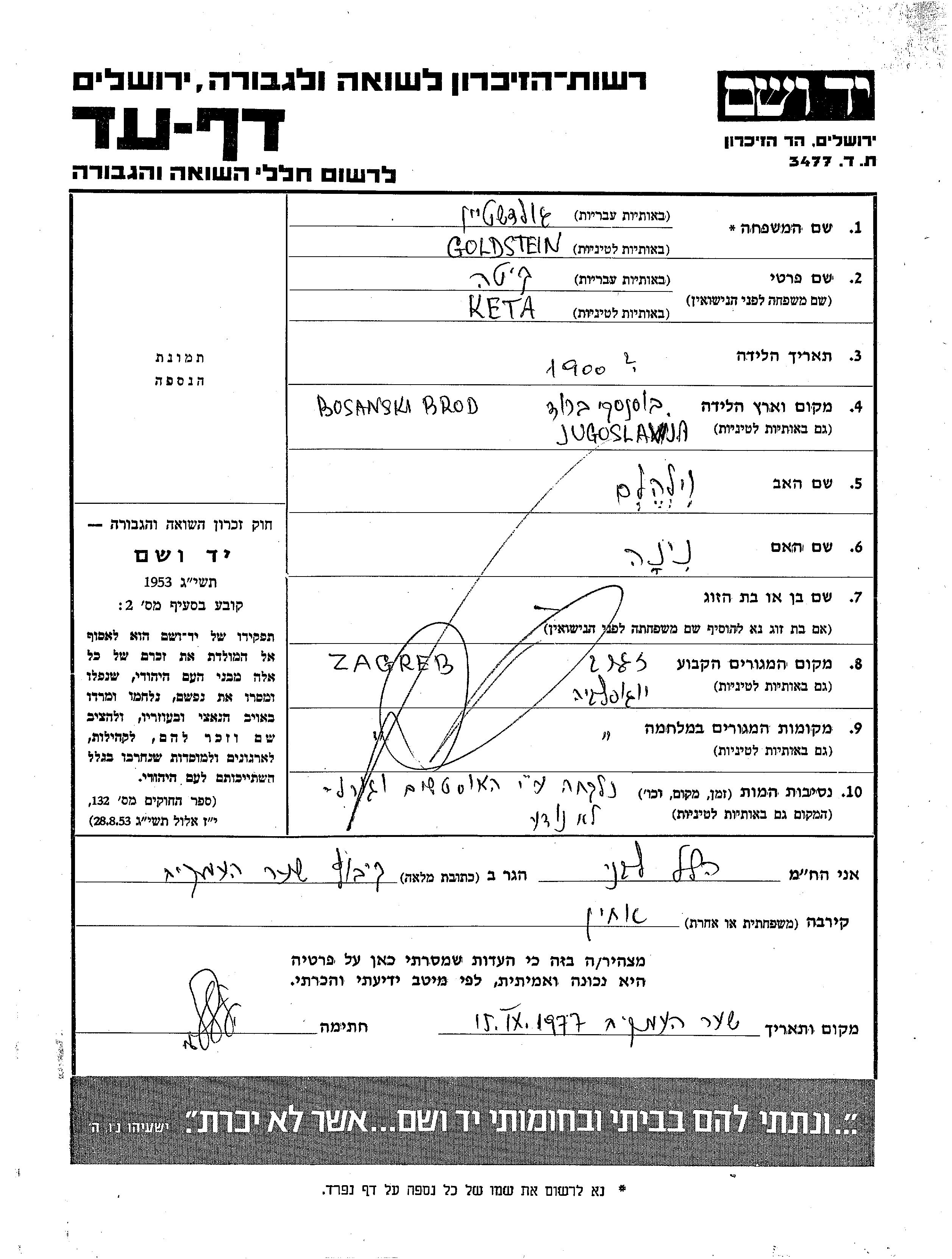Goldstein Keta 1900 Zagreb, יוגוסלביה דף-עד