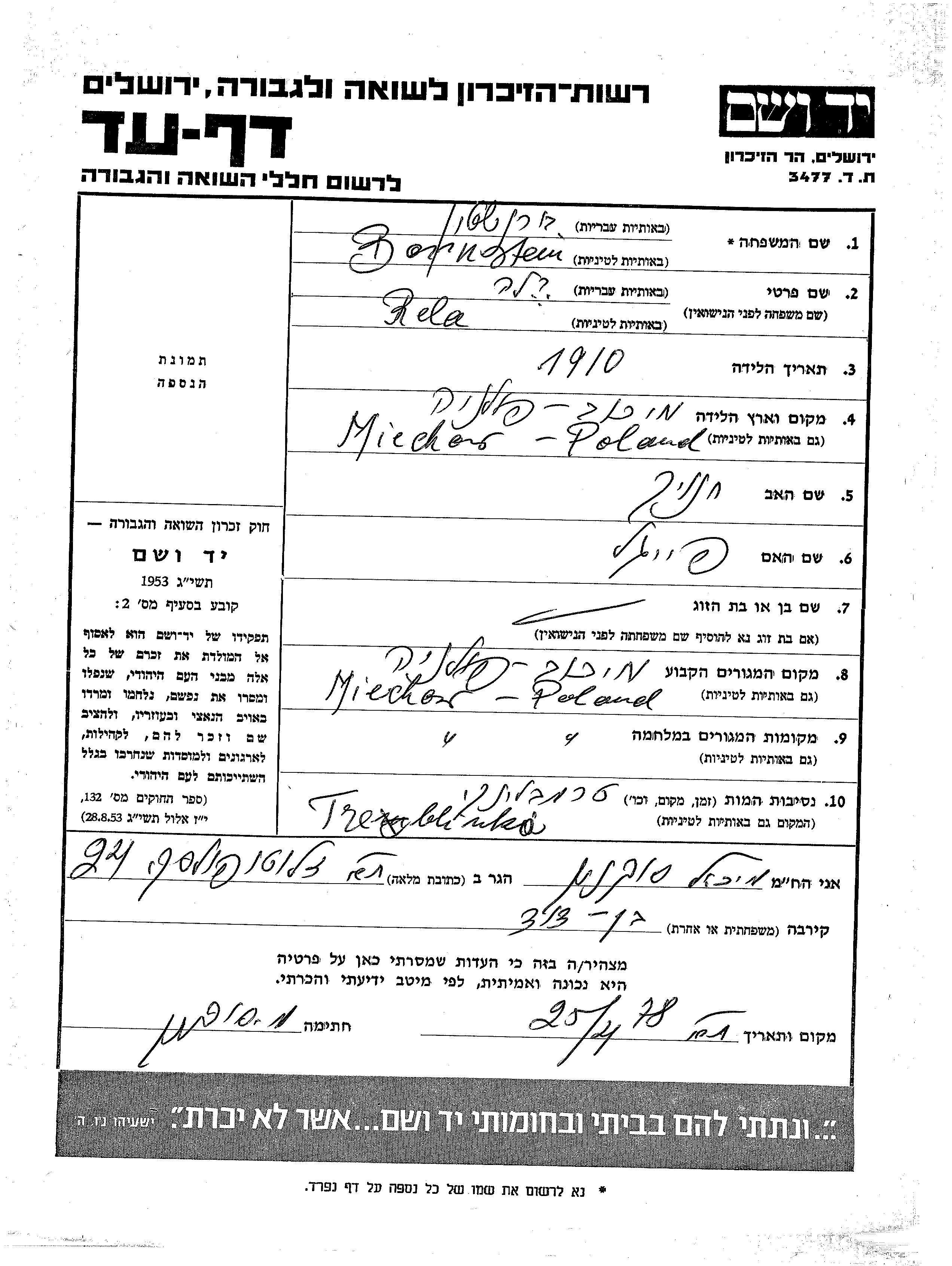 יד ושם - המפעל להנצחת השמות בדפי עד