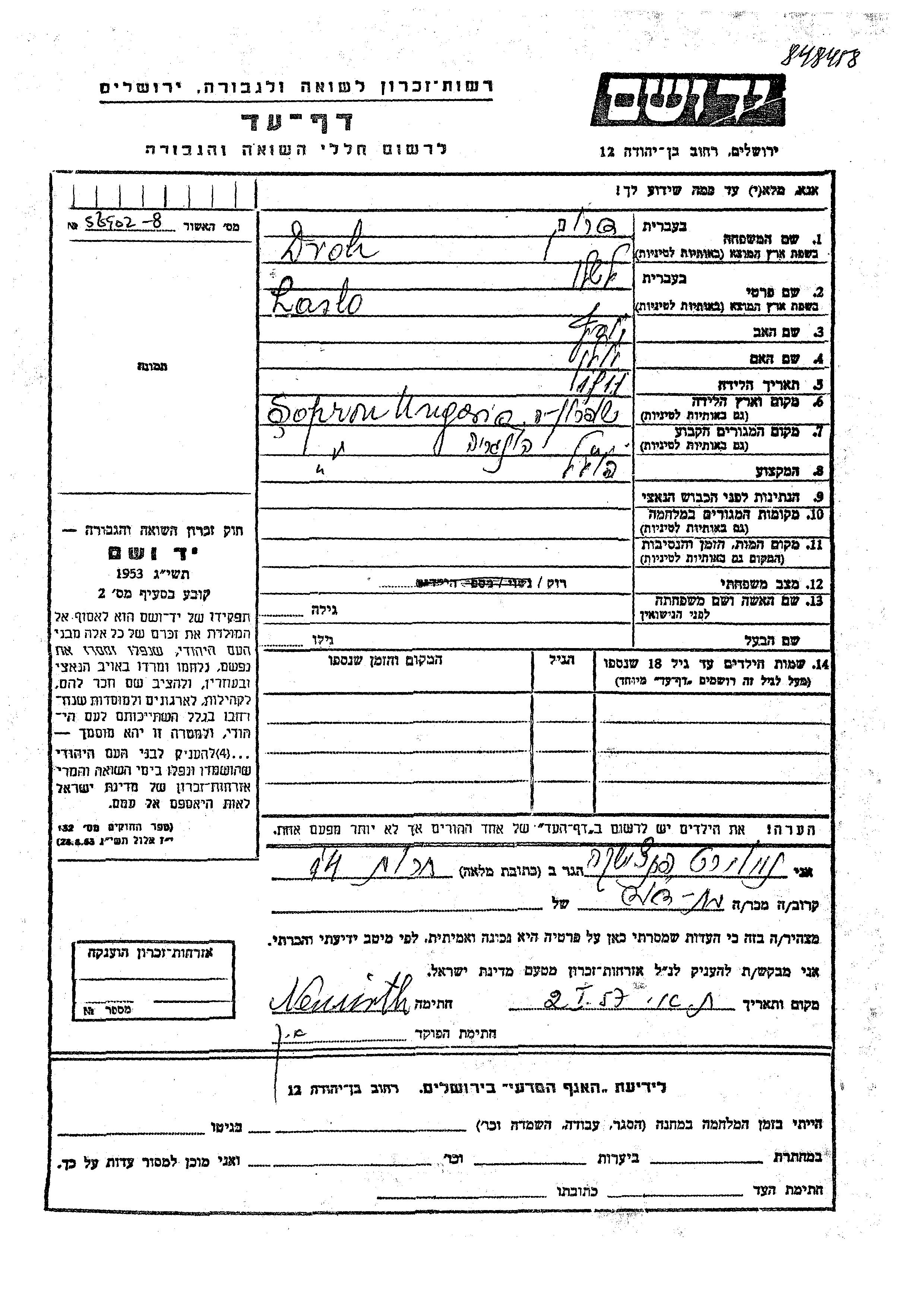 יד ושם - המפעל להנצחת השמות בדפי עד
