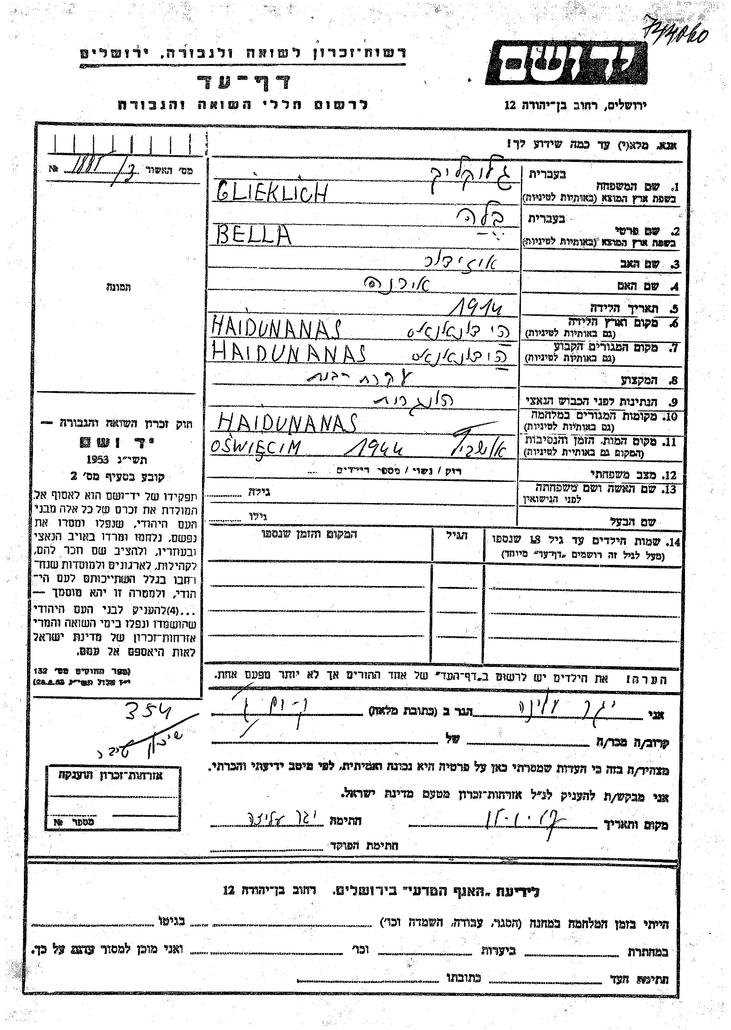 חיפוש שם מוסר דף העד. חיפוש לפי כל שם פרטי, כולל כינוי או שם חיבה