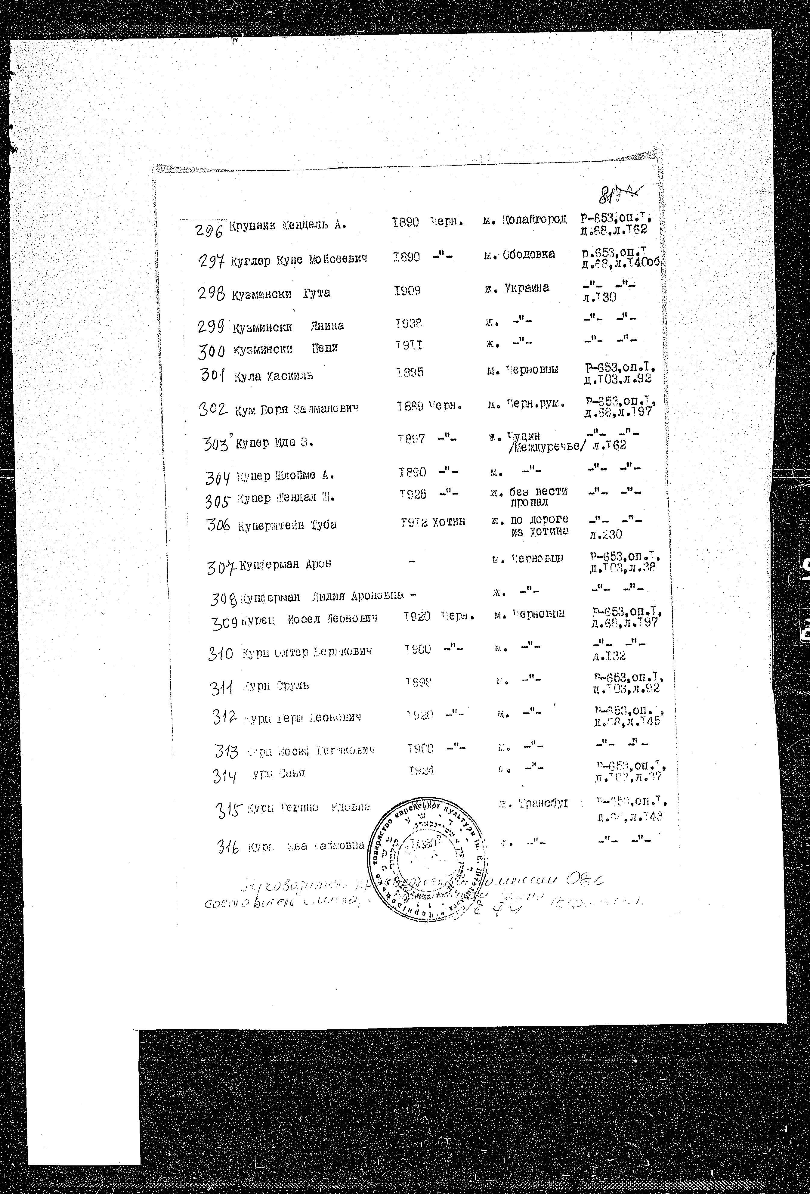 חיפוש שם מוסר דף העד. חיפוש לפי שם משפחה; כולל גם תוצאות חיפוש לפי שם הנעורים של אישה לפני הנישואין