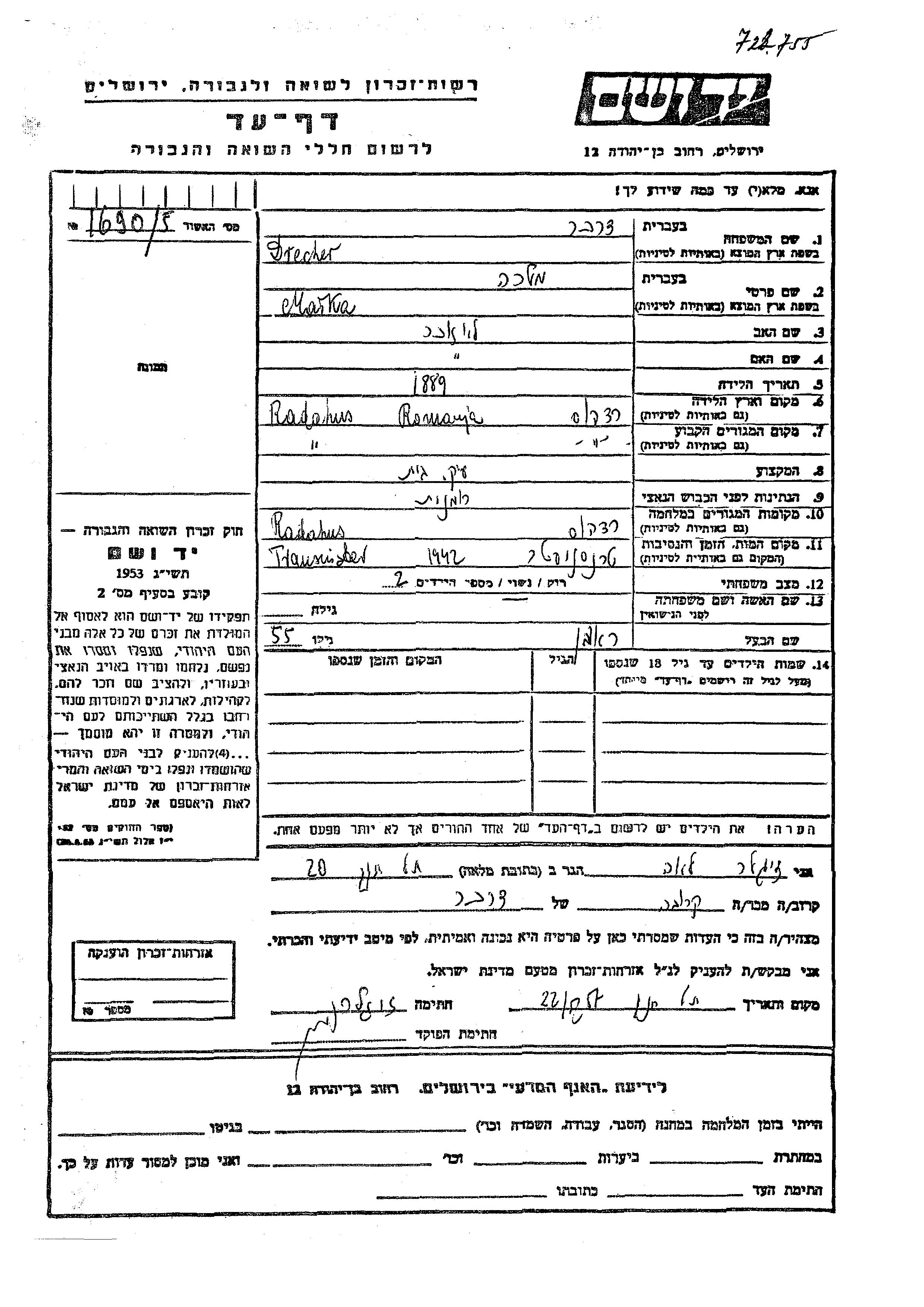יד ושם - המפעל להנצחת השמות בדפי עד
