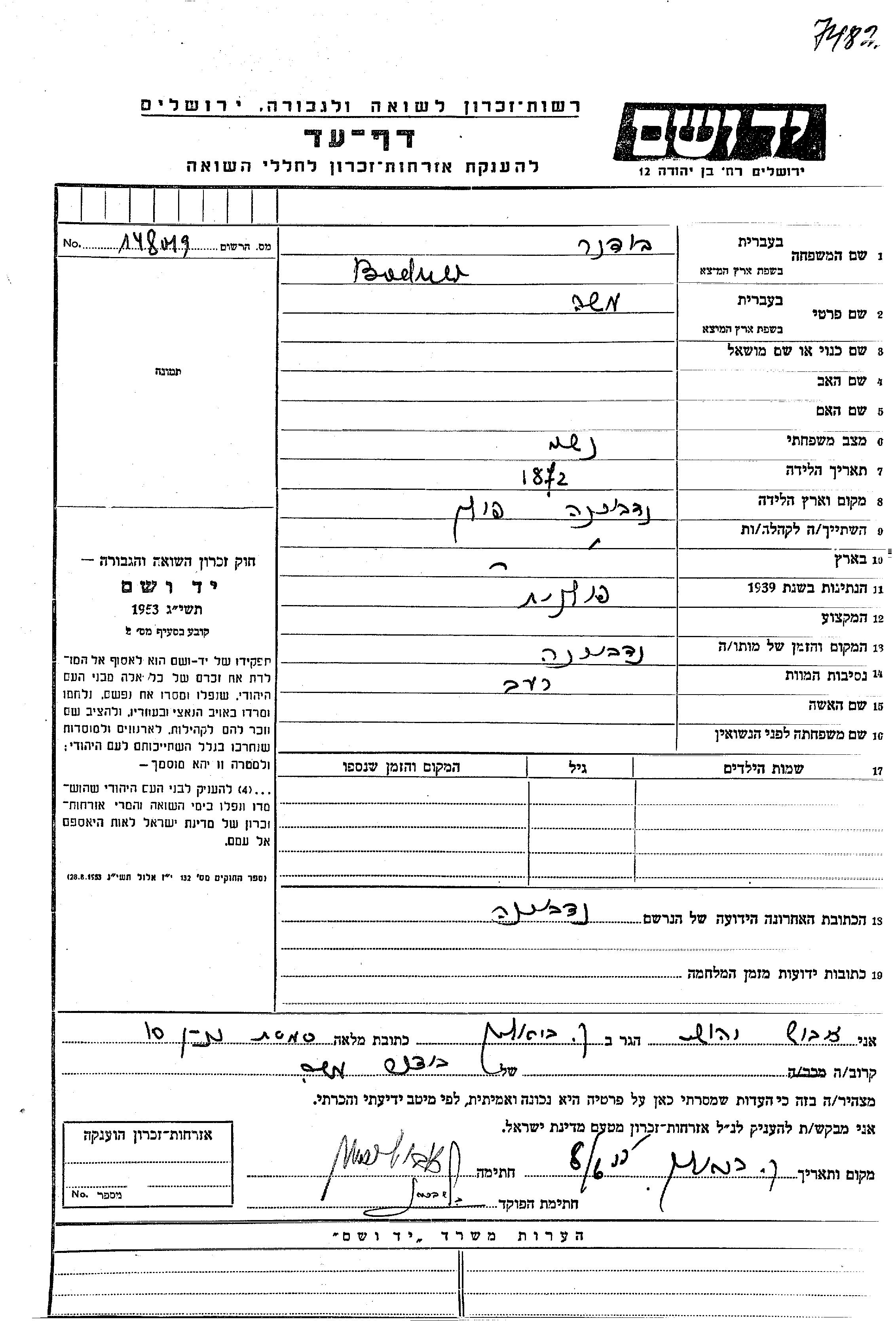 חיפוש שם מוסר דף העד. חיפוש לפי כל שם פרטי, כולל כינוי או שם חיבה