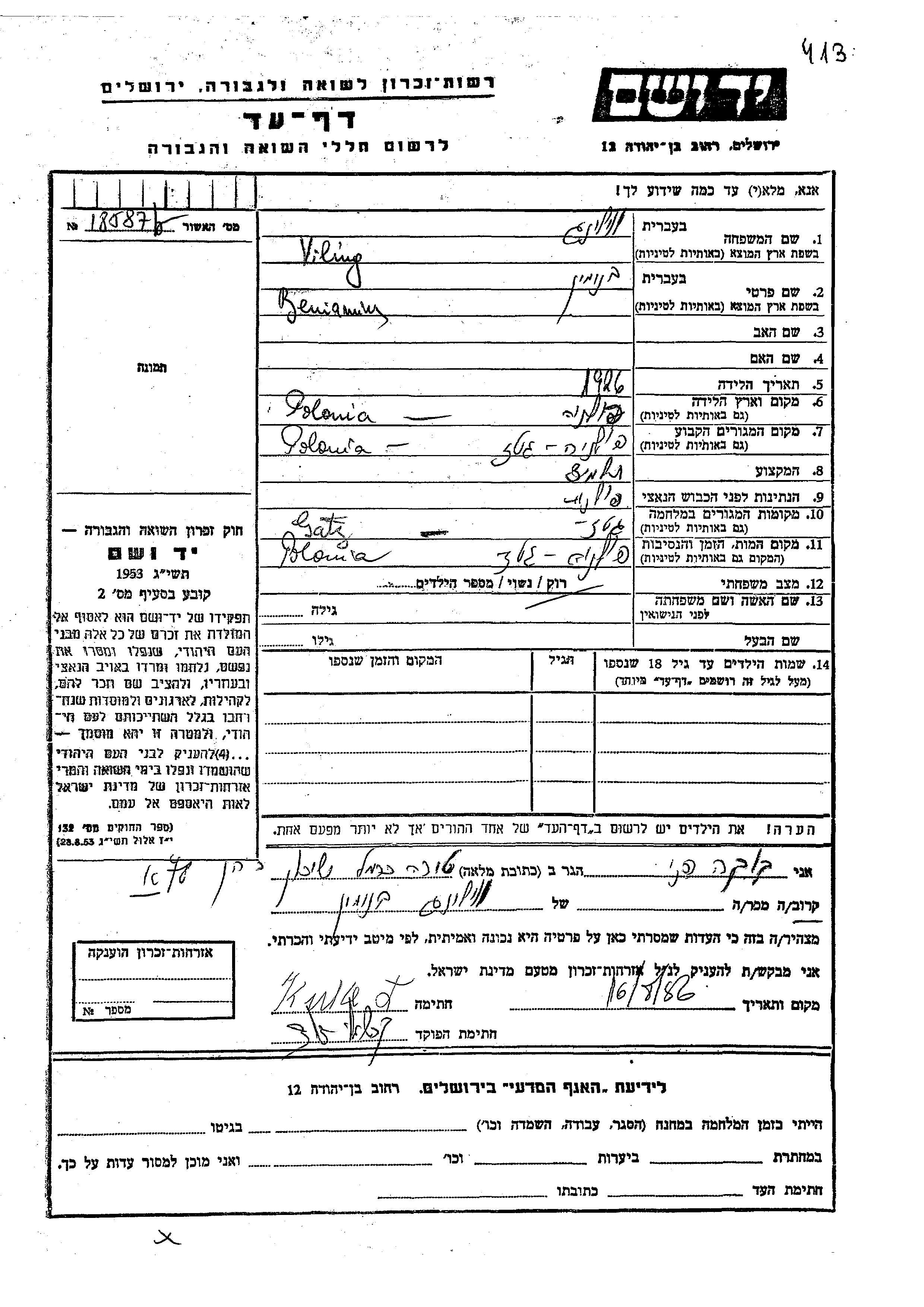 יד ושם - המפעל להנצחת השמות בדפי עד