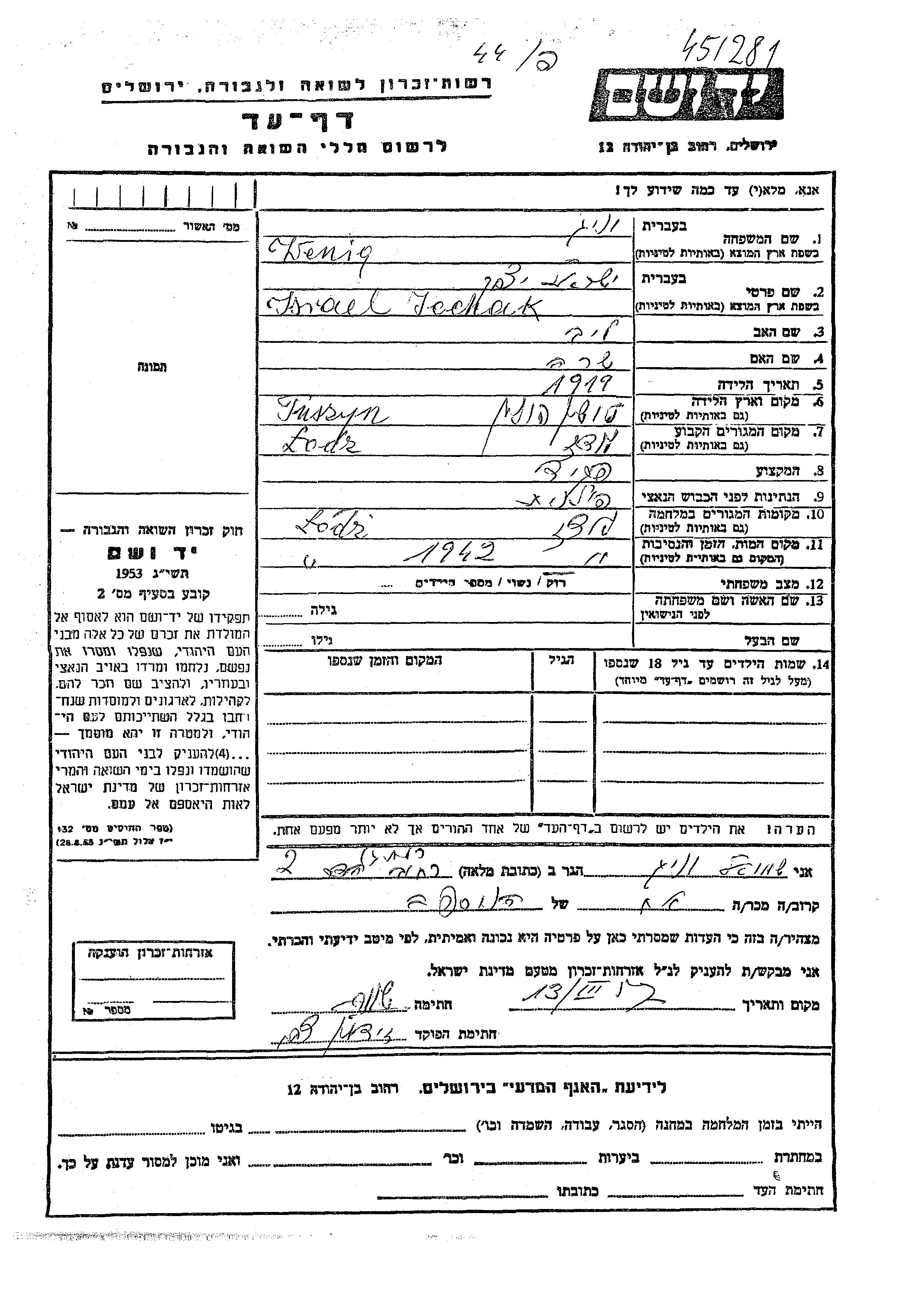 יד ושם - המפעל להנצחת השמות בדפי עד