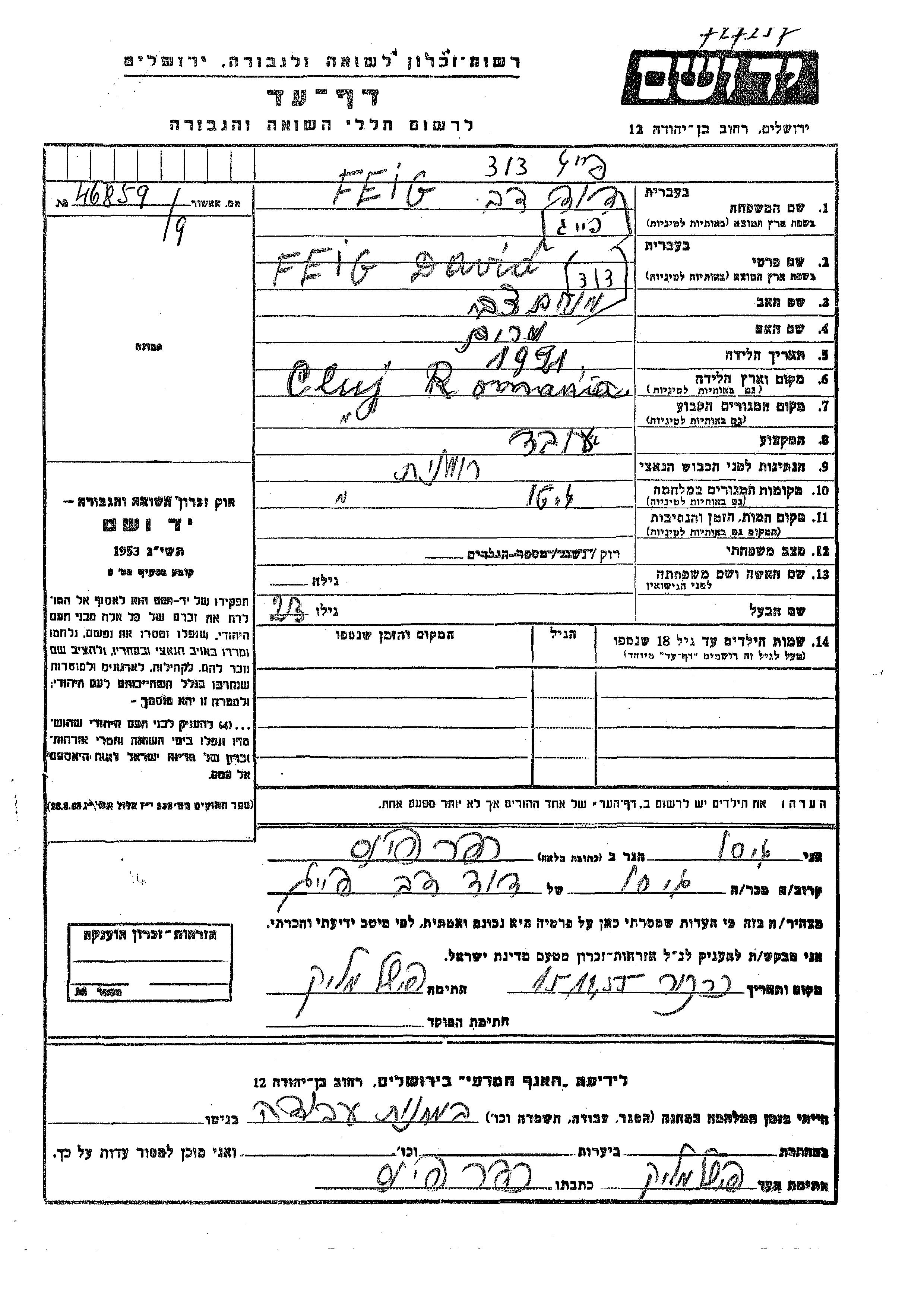 פייג דוד דב 1921 Cluj, רומניה דף-עד