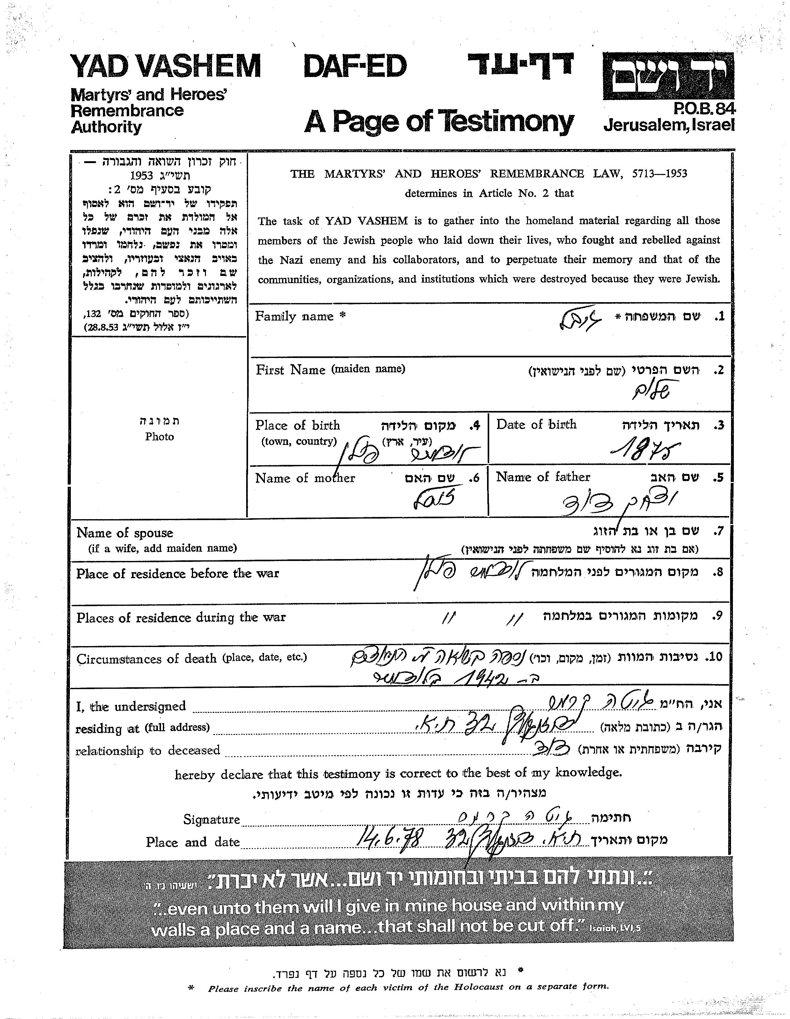 יד ושם - המפעל להנצחת השמות בדפי עד