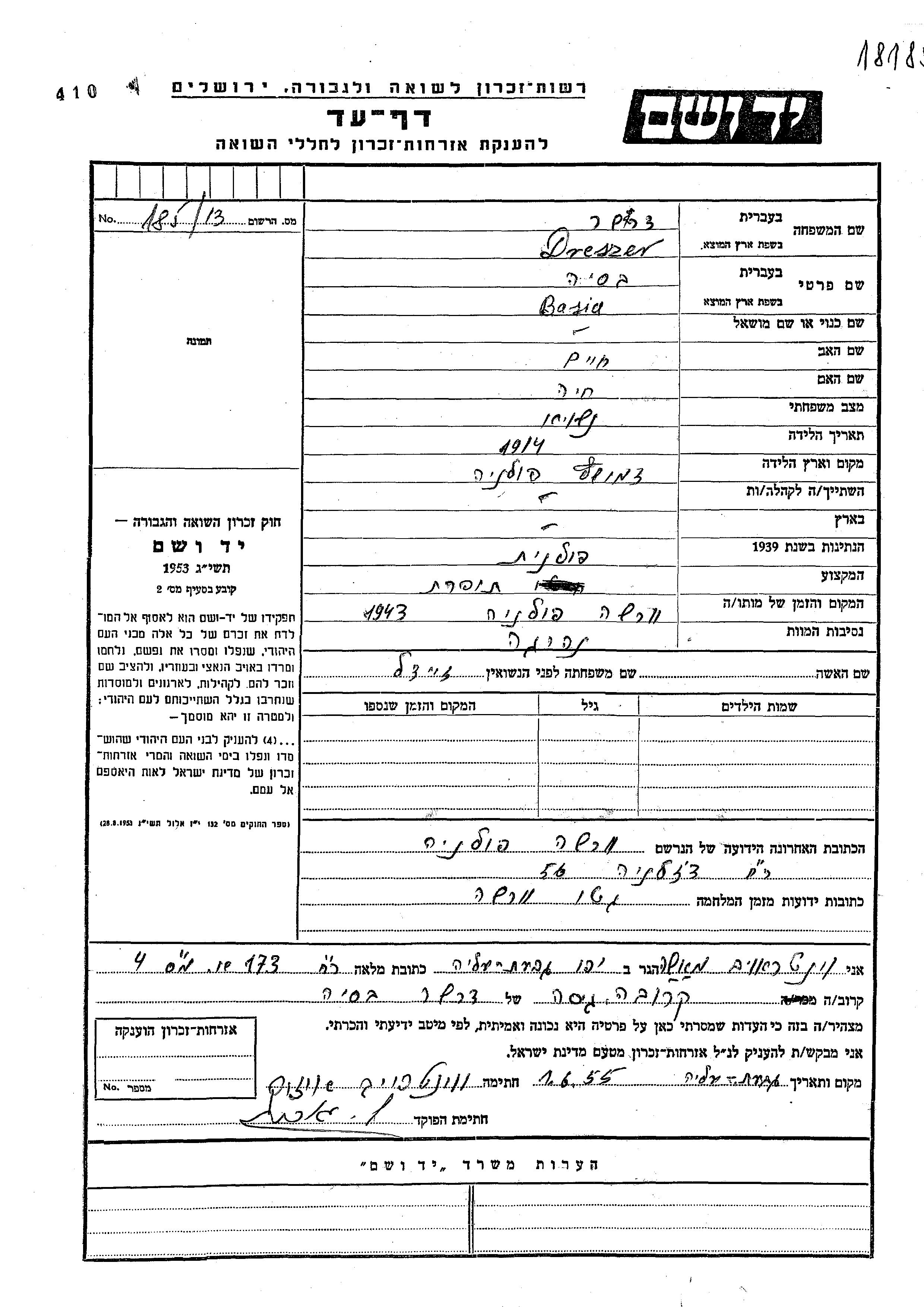 Dreszer Basia 1914 Warszawa, פולין דף-עד