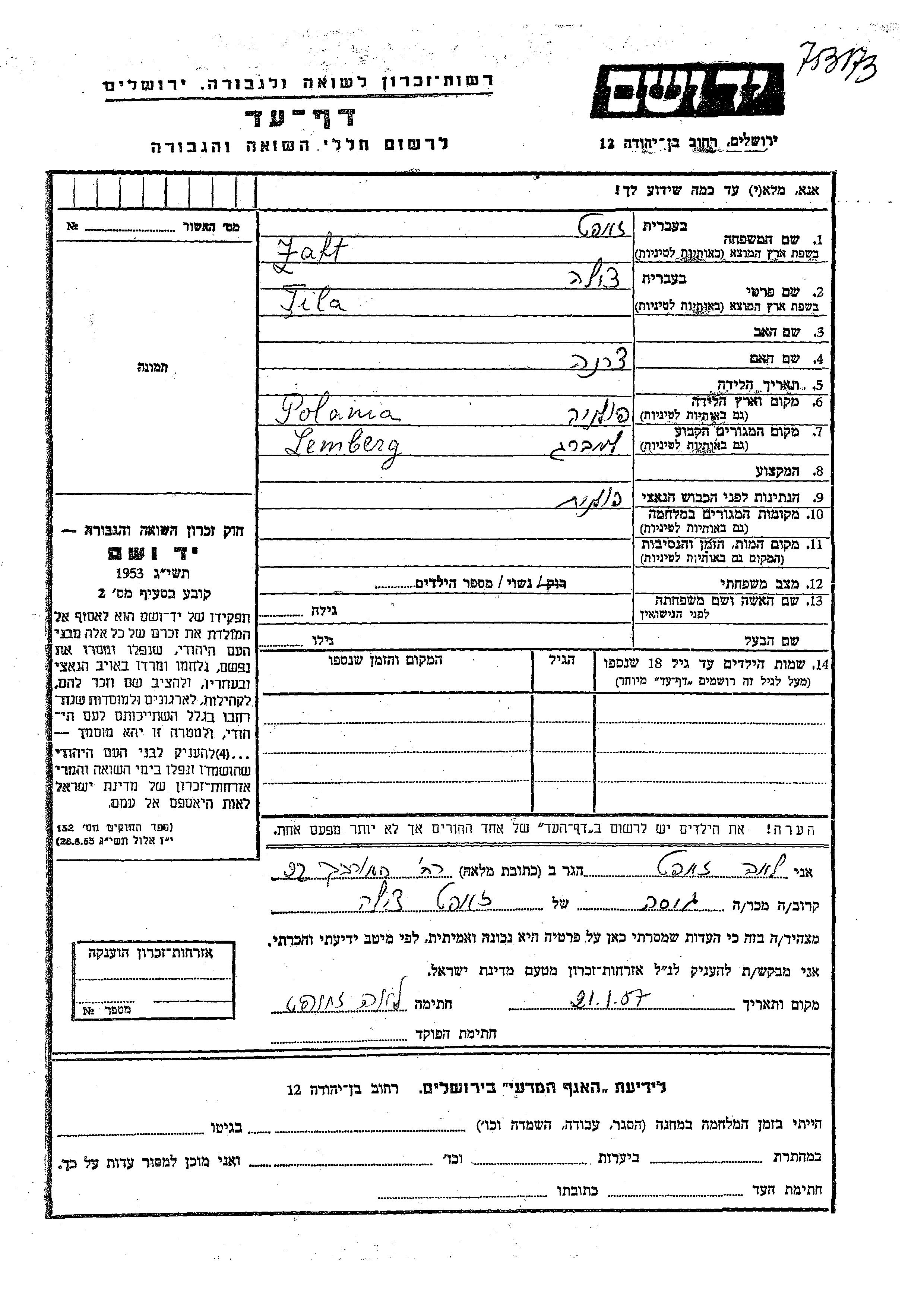 חיפוש שם מוסר דף העד. חיפוש לפי כל שם פרטי, כולל כינוי או שם חיבה