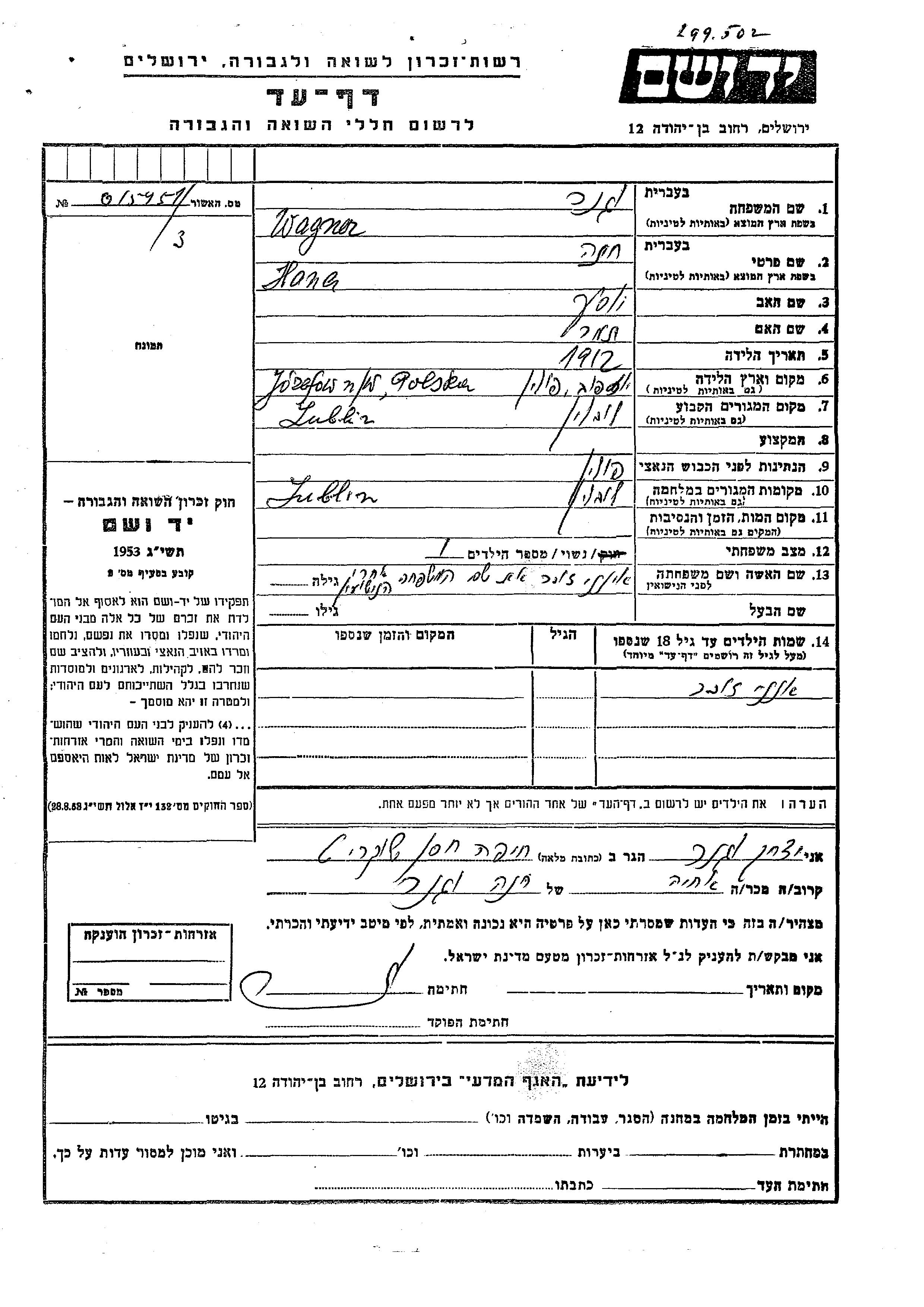 יד ושם - המפעל להנצחת השמות בדפי עד