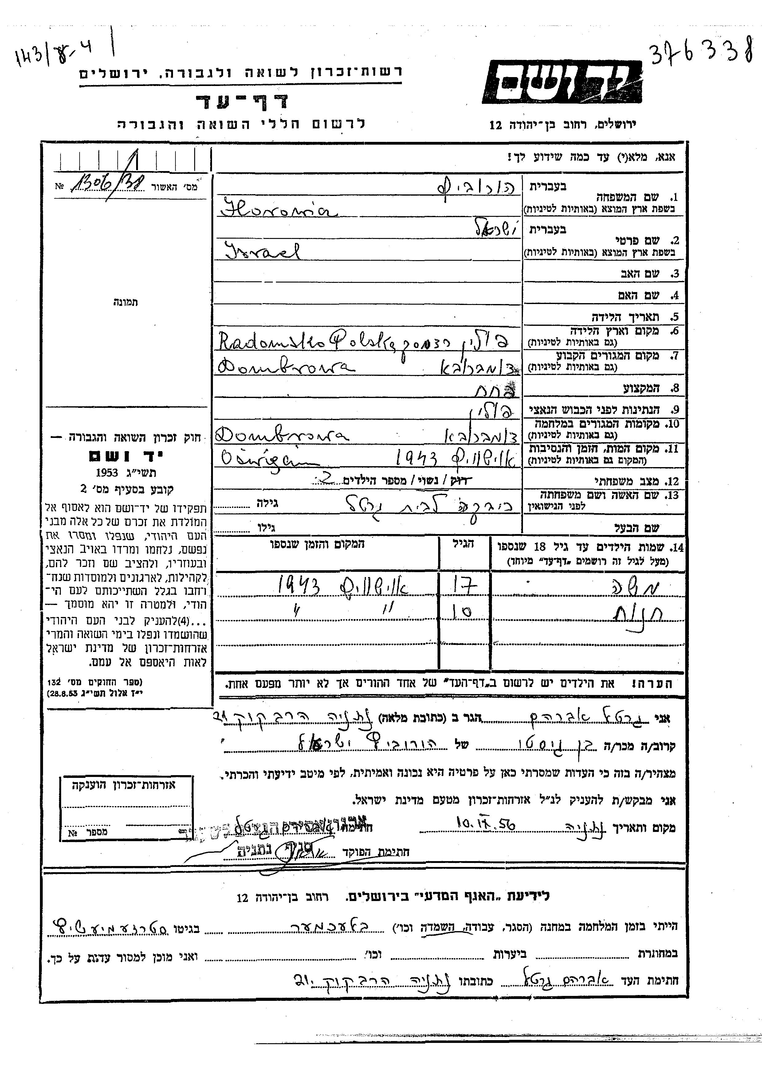 Horowicz Ysrael Dombrowa, פולין דף-עד