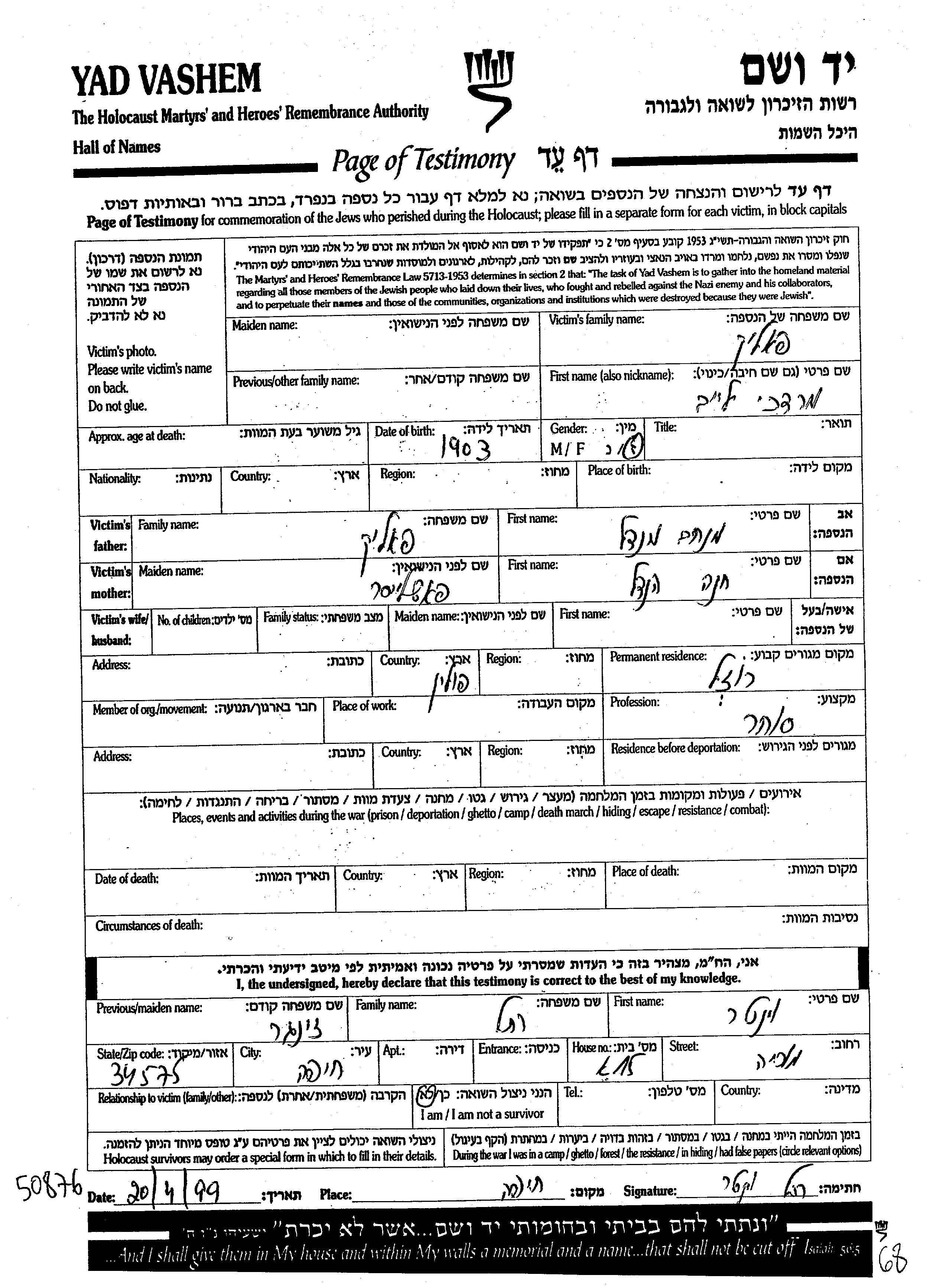 חיפוש שם מוסר דף העד. חיפוש לפי כל שם פרטי, כולל כינוי או שם חיבה