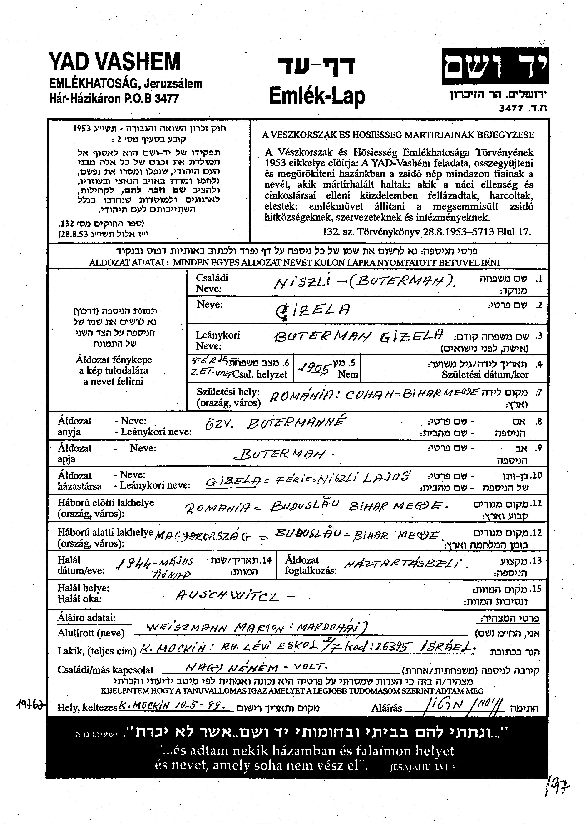 Niszli גיזלה 1905 Buduslau, רומניה דף-עד