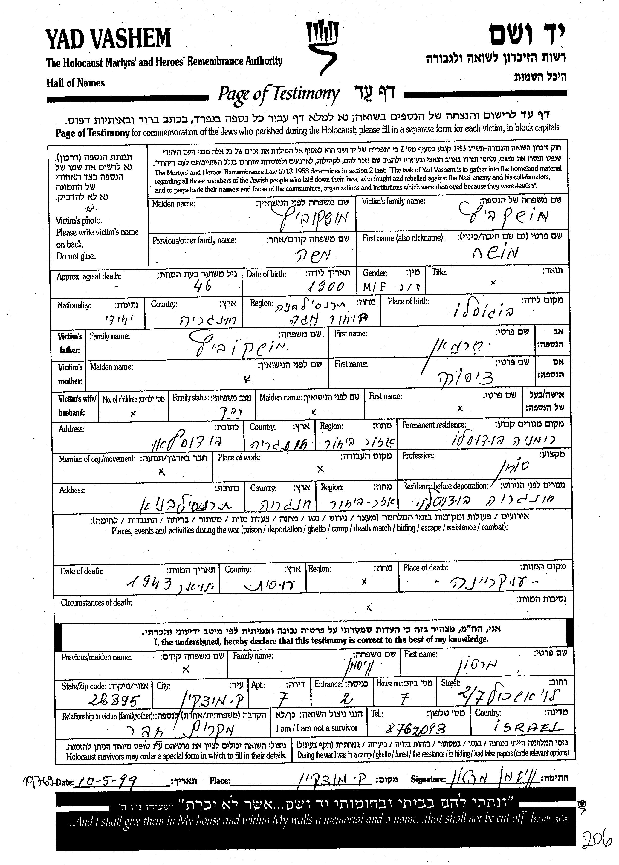 יד ושם - המפעל להנצחת השמות בדפי עד