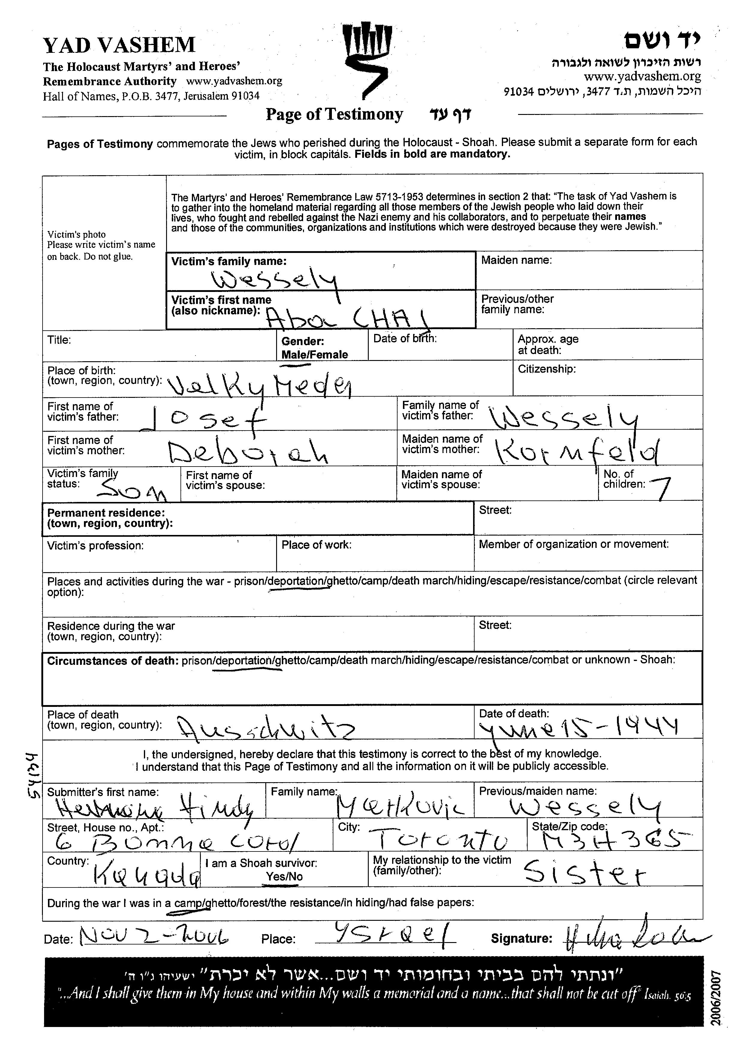 יד ושם - המפעל להנצחת השמות בדפי עד
