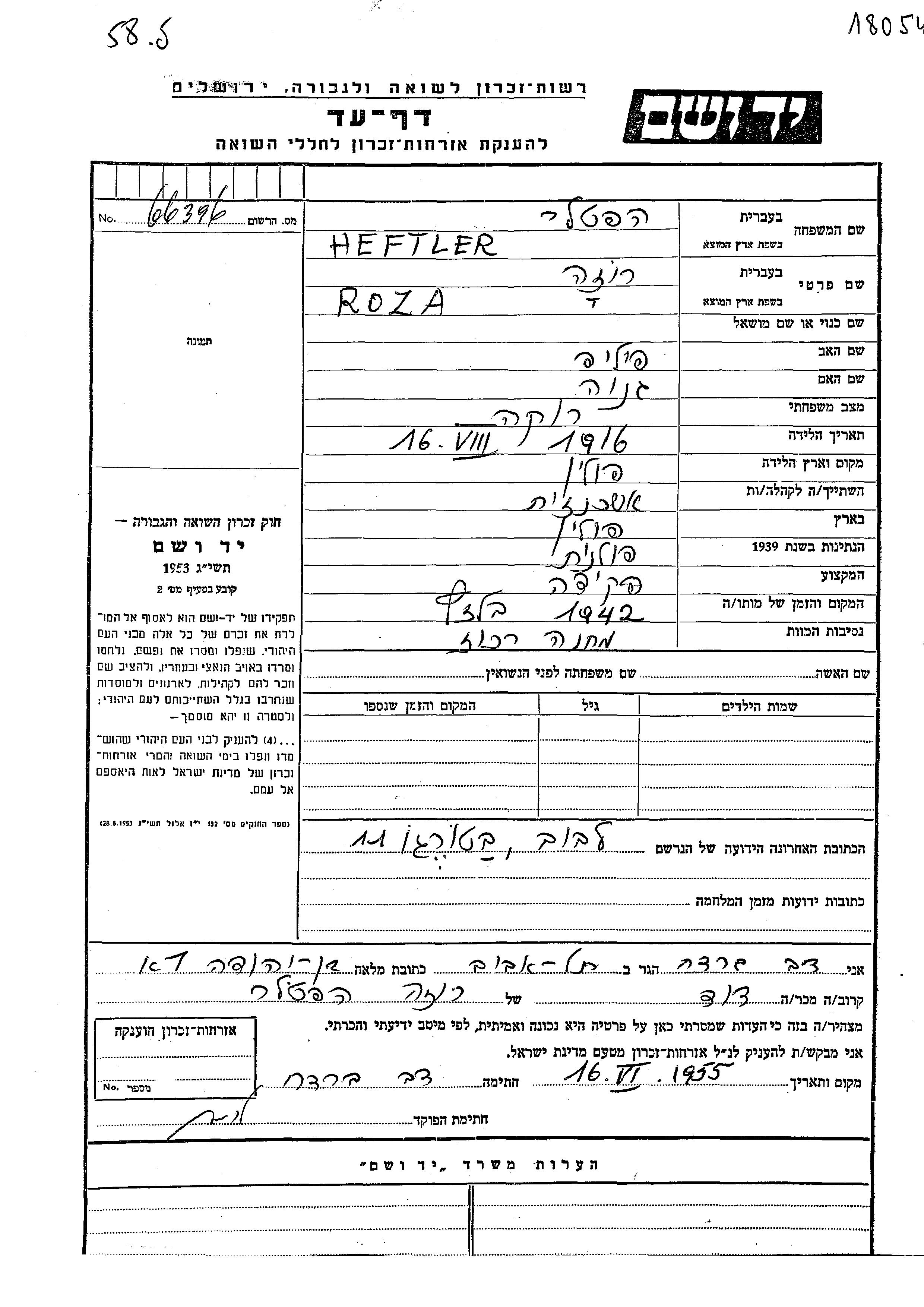 רוזה נרצחה בשואה. מקום המוות: Belzec שבפולין בשנת 1942.