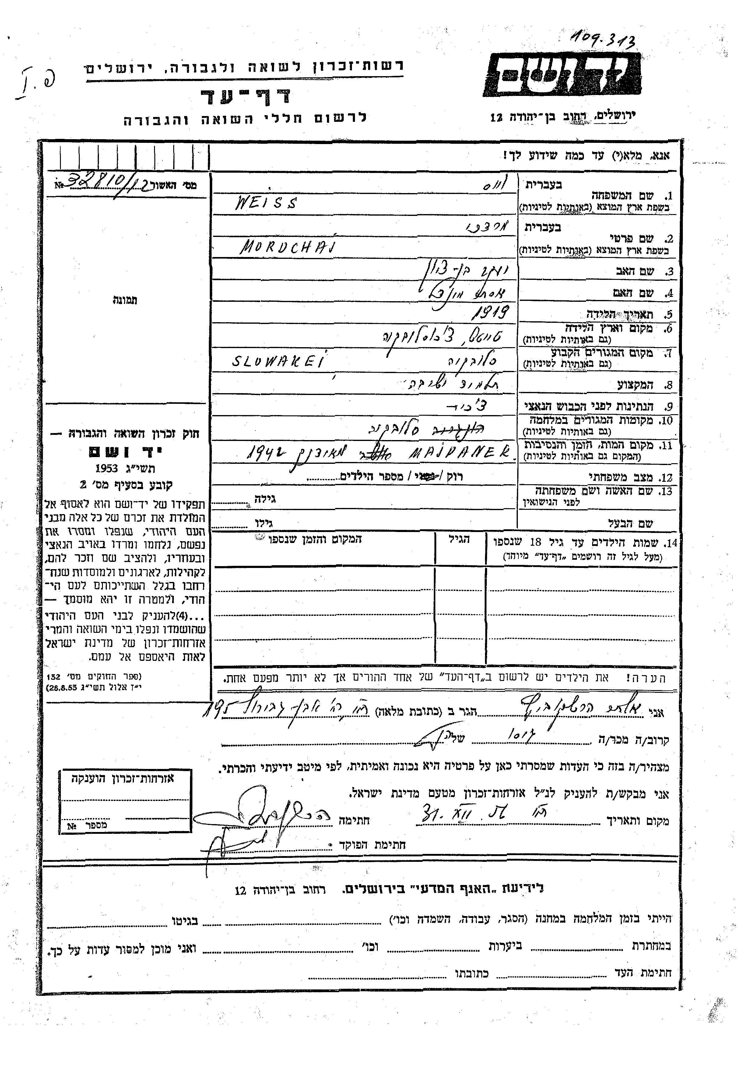 Weiss Mordchai 1919 צ'כוסלובקיה דף-עד