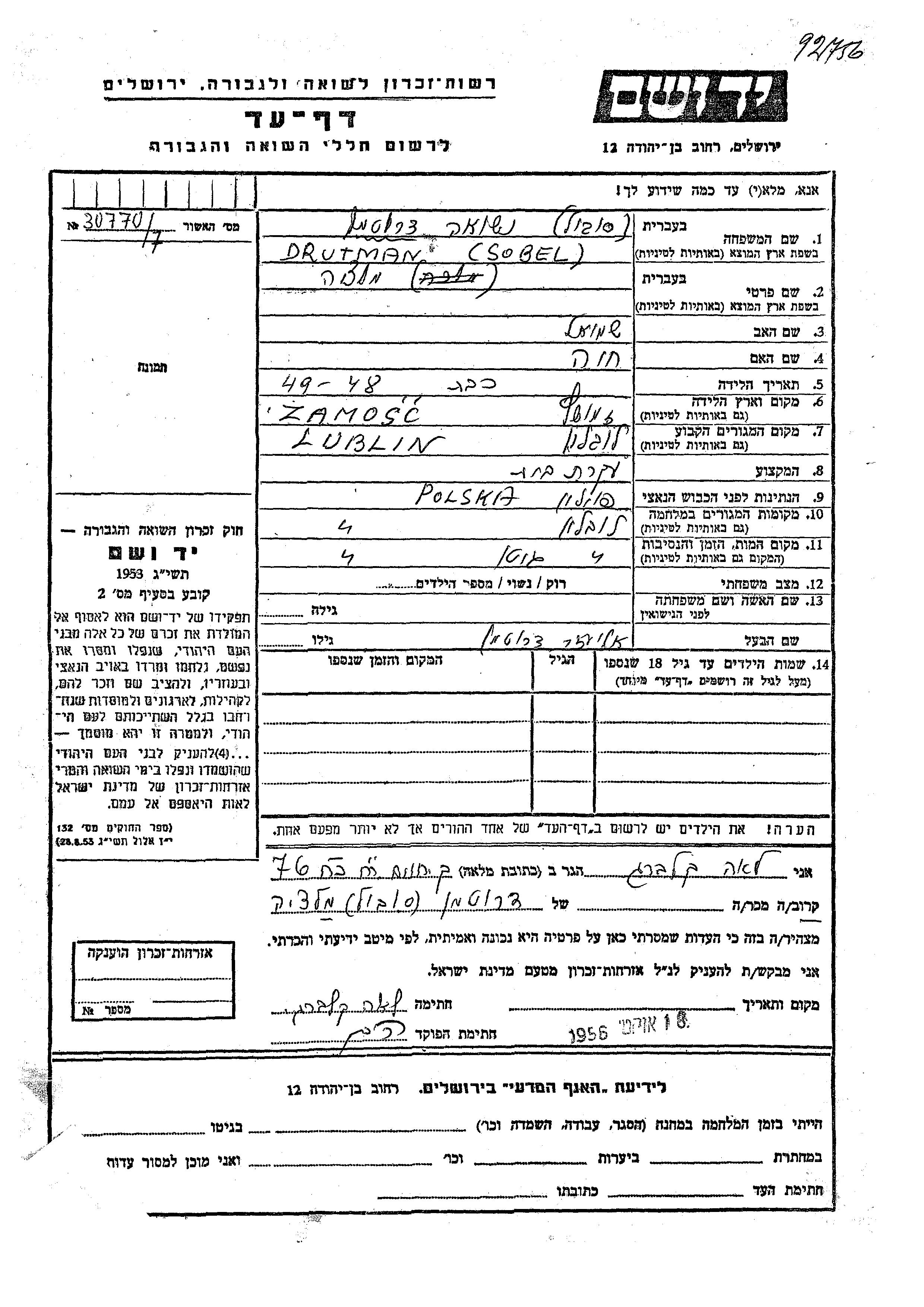 יד ושם - המפעל להנצחת השמות בדפי עד