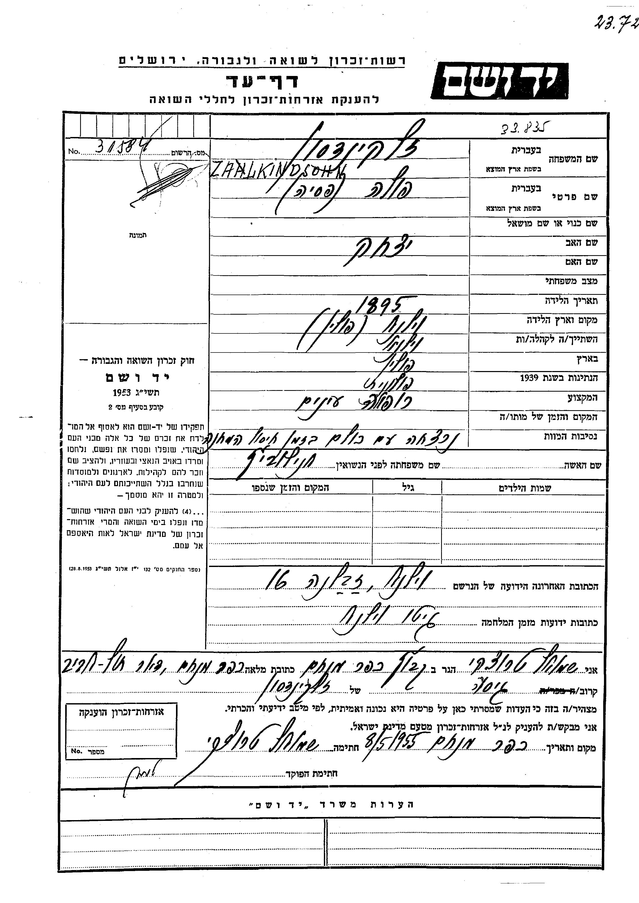 Zalkindsohn פולה פסיה 1895 Wilna, פולין דף-עד