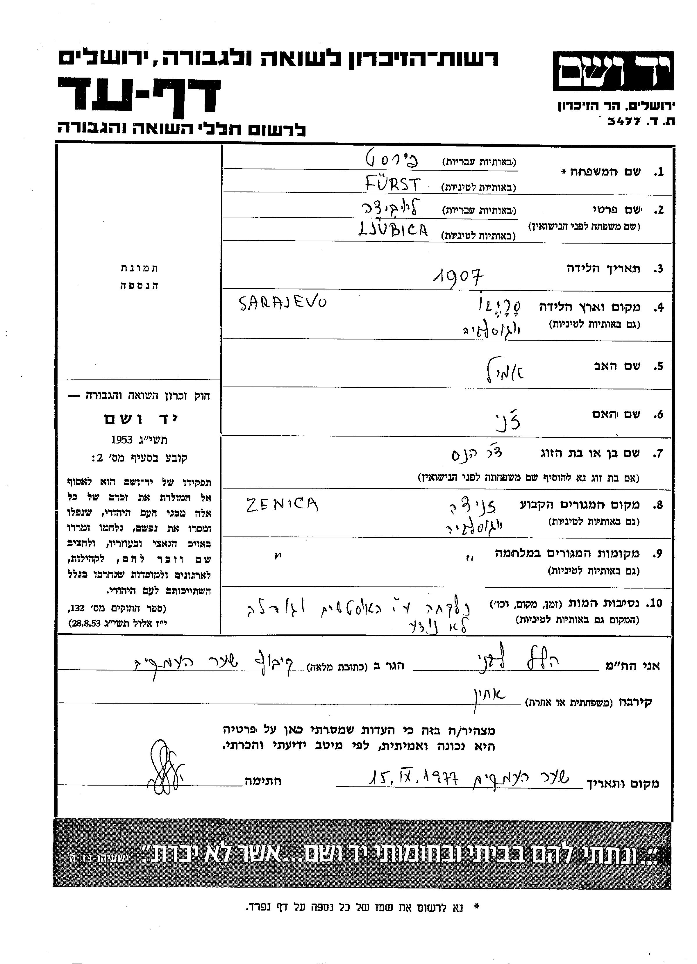 יד ושם - המפעל להנצחת השמות בדפי עד