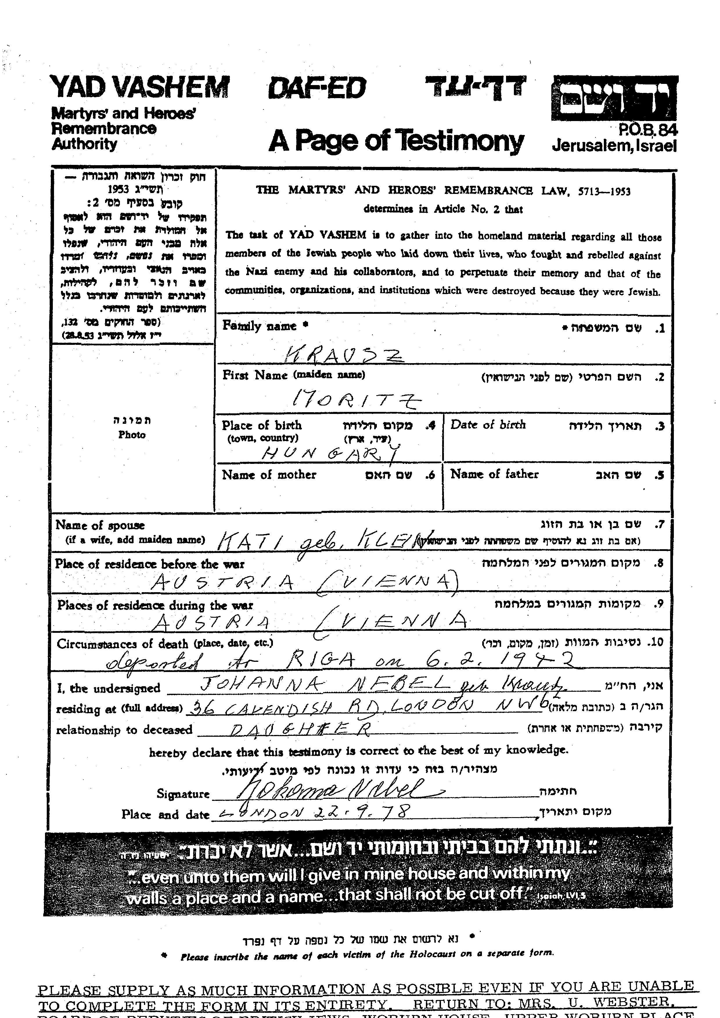 מוריץ נרצח בשואה. מקום המוות: Riga שבלטביה בשנת 06/02/1942.
